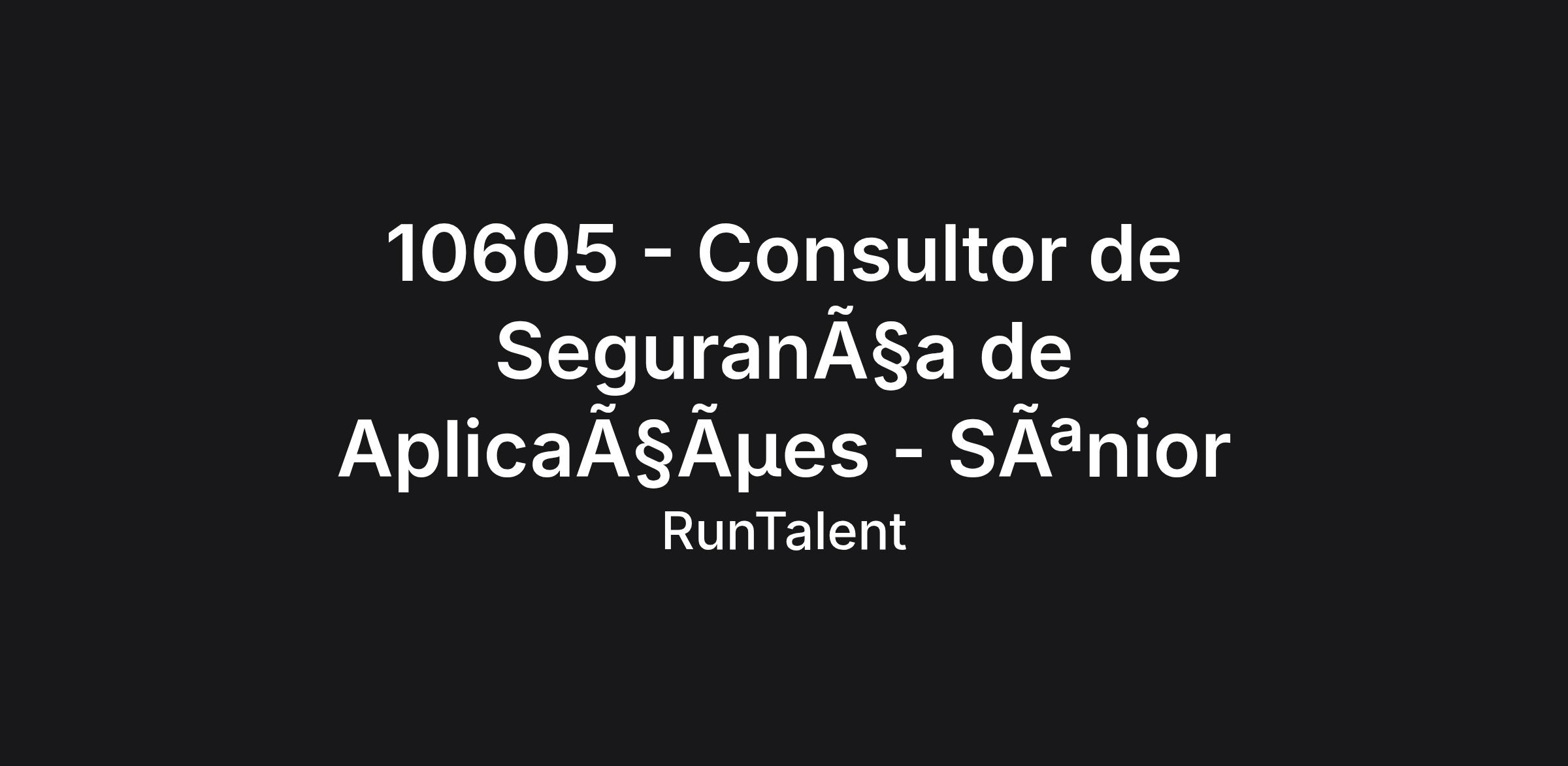 Oportunidade: Consultor de Segurança de Aplicações - Sênior