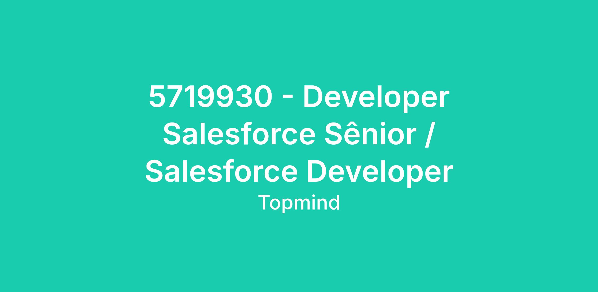 Somos uma empresa focada em transformação digital, com projetos desafiadores em Salesforce para clientes de médio e grande porte. Buscamos uma pessoa Developer Salesforce Sênior que queira atuar de ponta a ponta, da concepção à entrega, em um ambiente colaborativo, ágil e orientado a resultados.