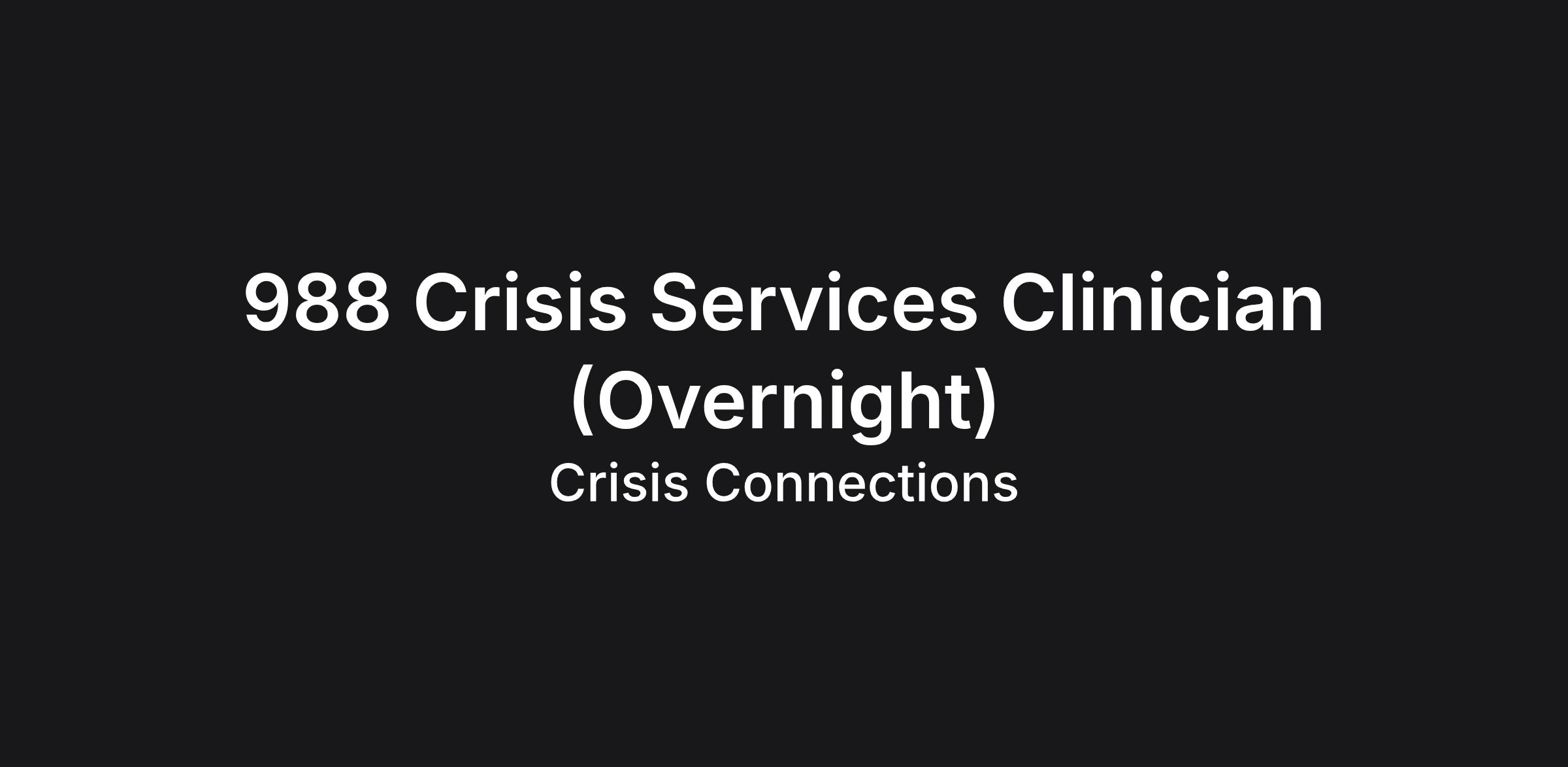 988 Crisis Services Clinician — Night Shift (Remote)
