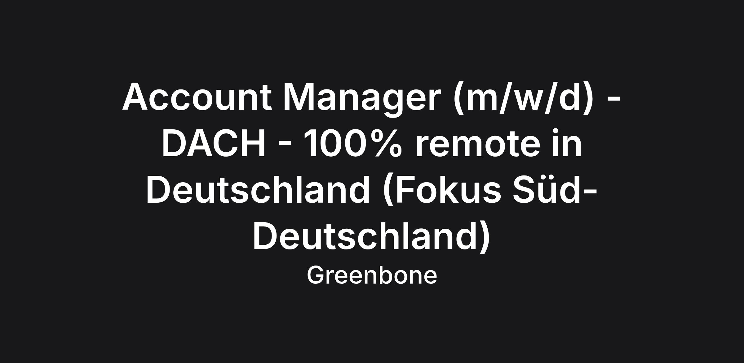 Account Manager (m/w/d) - DACH - 100% remote in Deutschland (Fokus SΓΌd-Deutschland)
