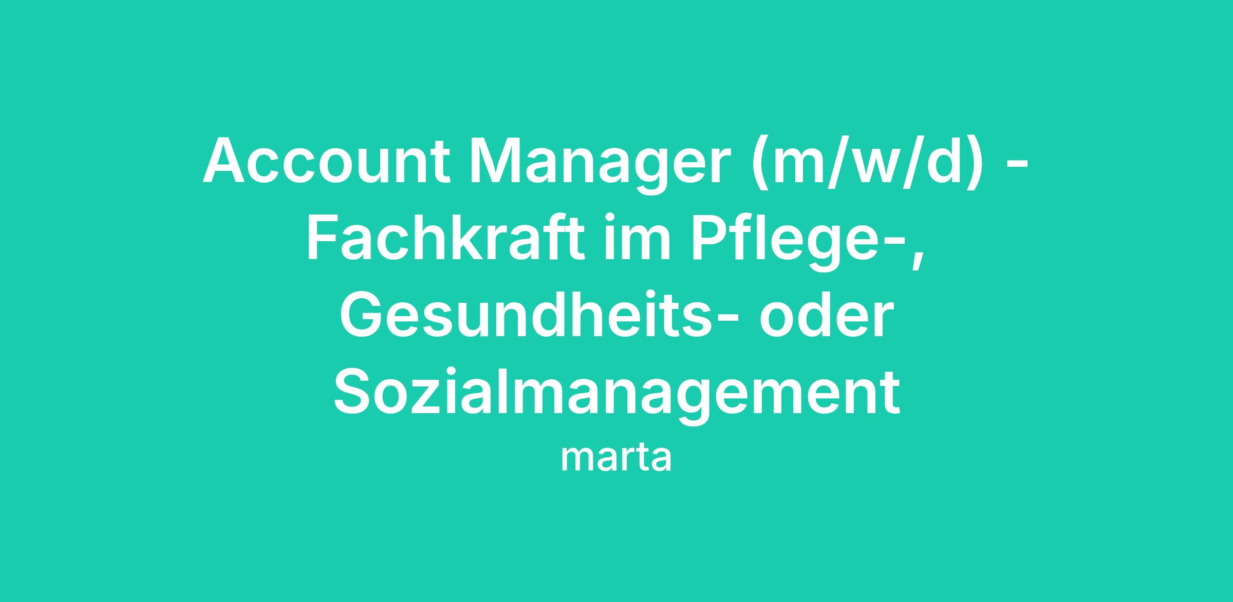 Du bist auf der Suche nach einer neuen Herausforderung in einem rasant wachsenden, spannenden und herausfordernden Umfeld? Du möchtest bei deiner Arbeit wirklich einen gesellschaftlichen Beitrag leisten? Dann komm zu marta! Als Account Manager bist du für die Akquise und Betreuung deines eigenen Kundenstamms zuständig. Du kannst nicht nur wirklich etwas bewegen, sondern auch von attraktiven Provisionen profitieren.