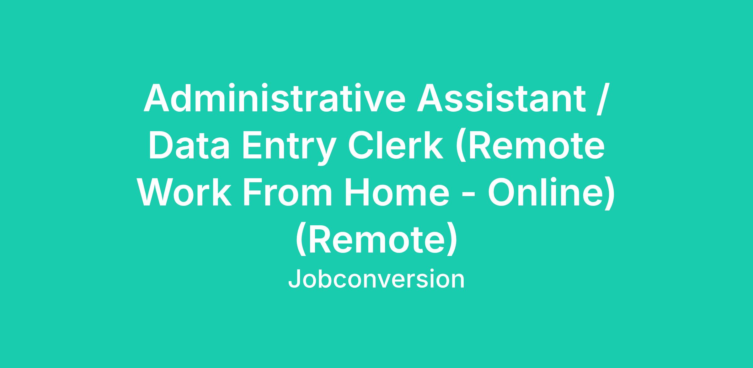 Administrative Assistant / Data Entry Clerk (Remote Work From Home - Online) (Remote)