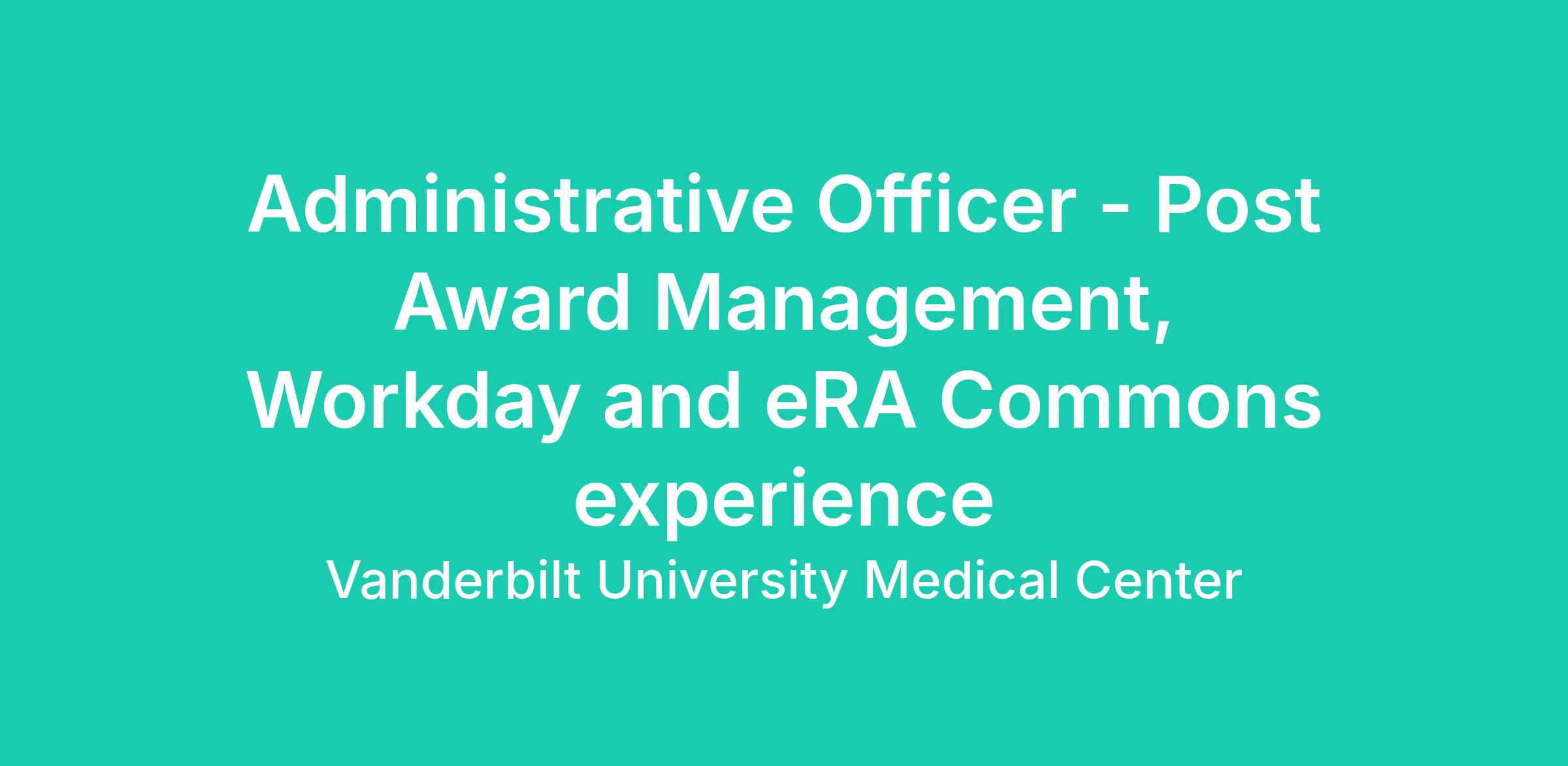 Advanced knowledge and experience utilizing VUMC and sponsor-specific electronic grants management systems (i.e. NIH eRA Commons, Coeus/PEER/Workday/Aries/Discover-E)