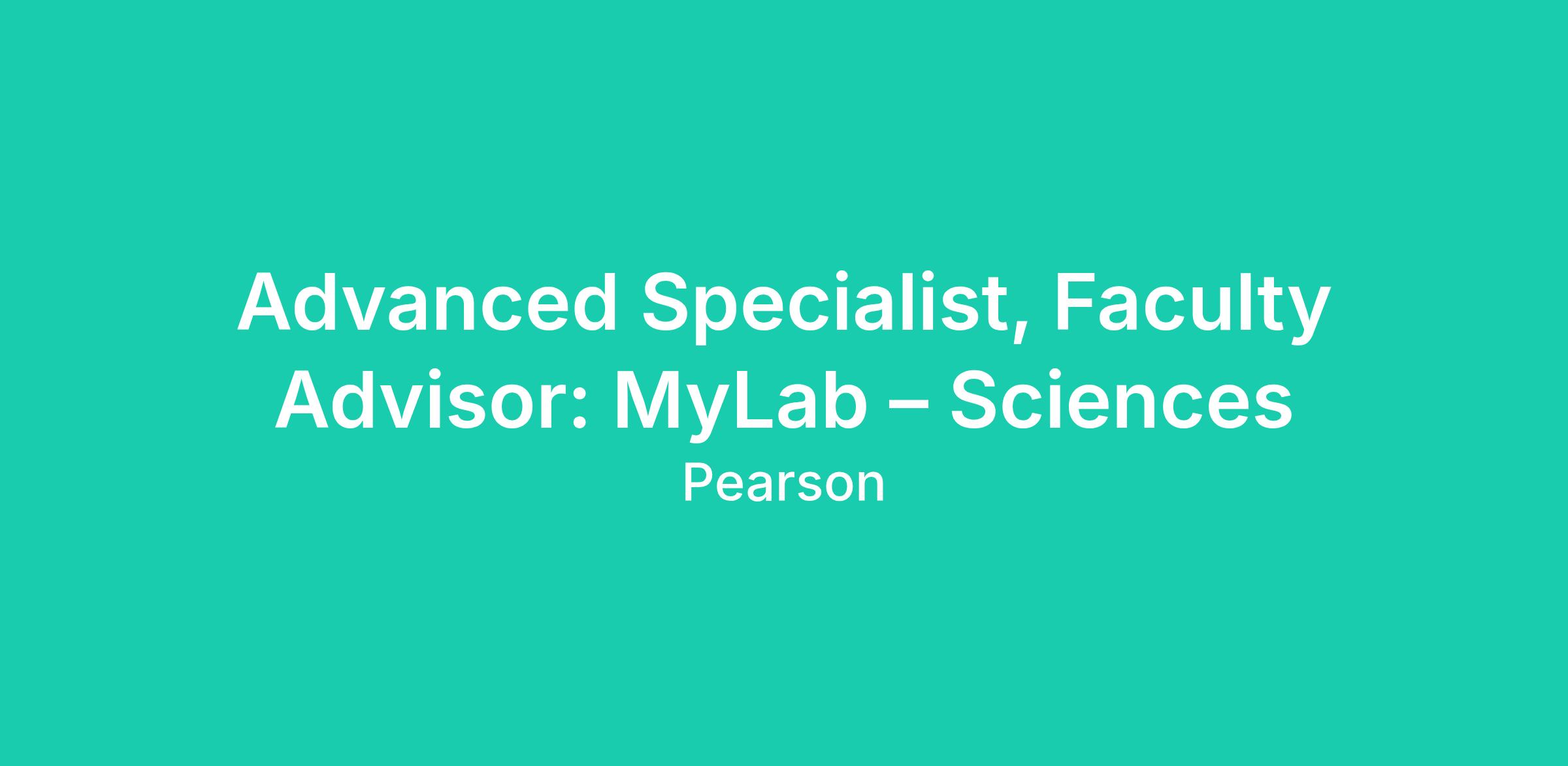 The Faculty Advisor will have expert-level knowledge of Pearson digital implementation models within courses related to their own teaching/research field and be able to extrapolate those skills into a variety of fields within Sciences and further apply their mastery to related disciplines that utilize the same core learning tools. The Faculty Advisor must be able to investigate and respond to questions, offering responses tailored to specific audiences and purposes. They will develop and utilize a set of milestones to effectively track growth and success, using an established rubric and reporting template to facilitate these internal and external discussions. The Faculty Advisor will also collaborate with other teams to provide insights and feedback from the perspective of an instructor.