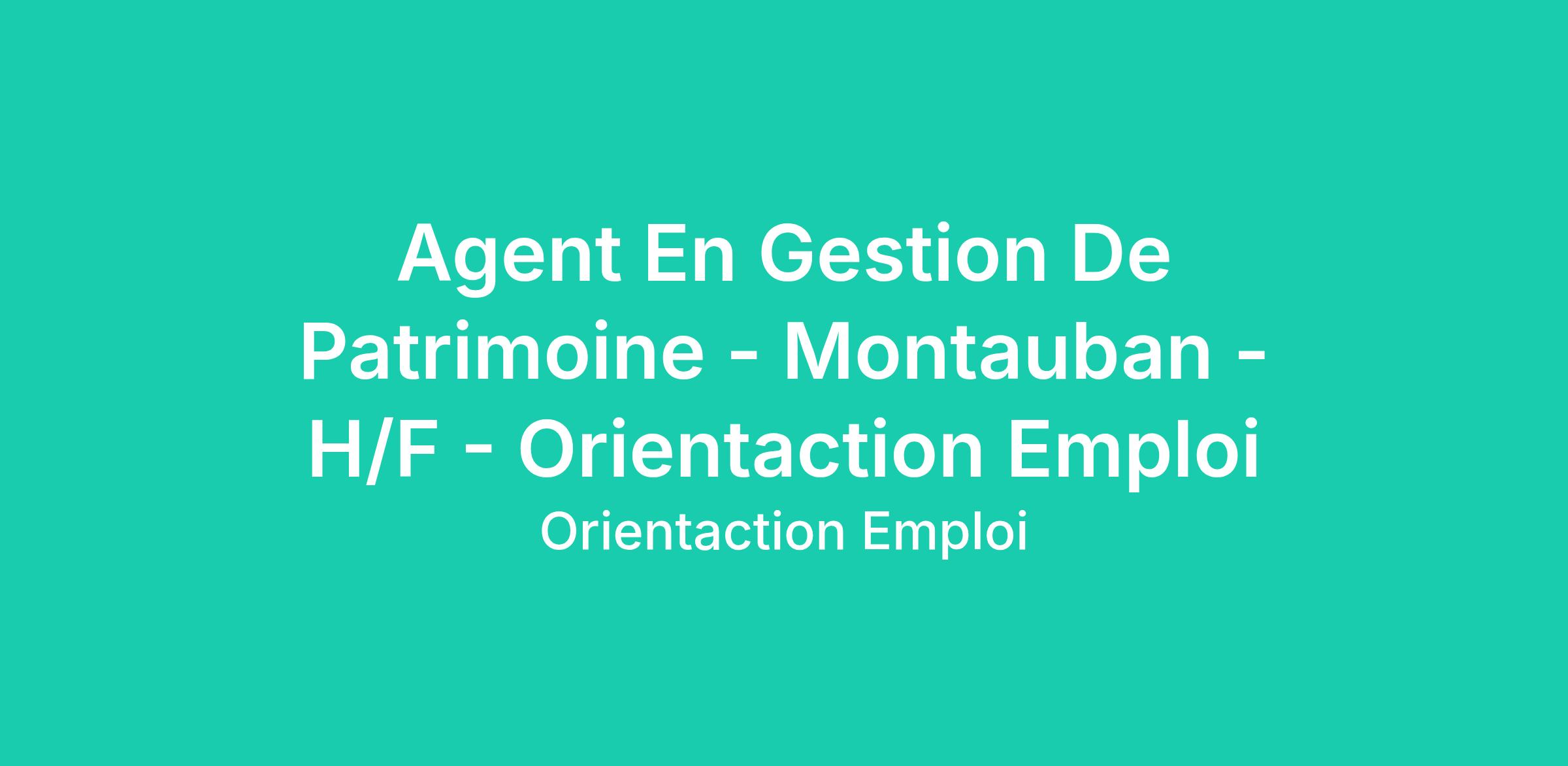 Agent En Gestion De Patrimoine - Montauban - H/F - Orientaction Emploi