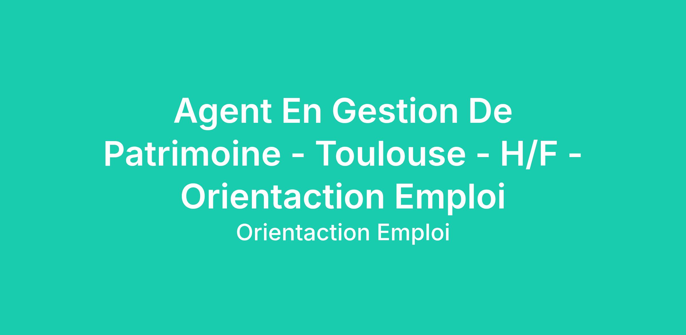 Agent En Gestion De Patrimoine - Toulouse - H/F - Orientaction Emploi