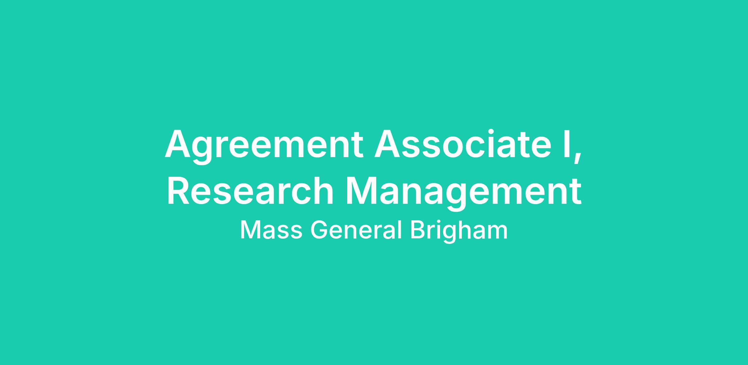 The Agreement Associate is an active member of the MGB central Research Management office and works closely with contracts for research at Brigham and Women’s Hospital, Massachusetts General Hospital, and other institutions within the MGB system. The Agreement Associate is committed to identifying and adhering to best practices in grants and contracts administration, while upholding the highest standards of integrity and fiduciary responsibility. The Agreement Associate will proactively address the demands of research grant administration by providing exceptional customer service to MGB’s distinguished research community and collaborators in their pioneering efforts in science and medicine.