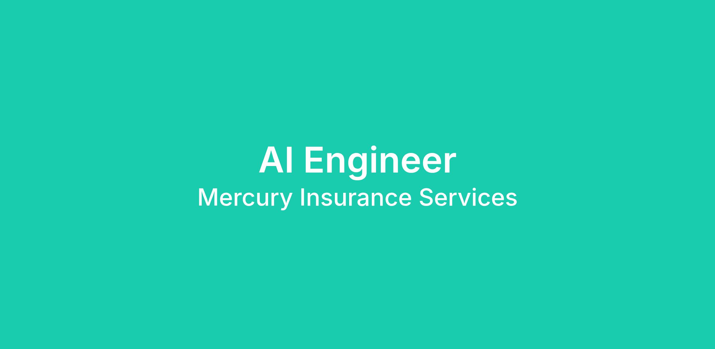 Mercury Insurance is an equal opportunity employer. All qualified applicants will receive consideration for employment without regard to race, color, religion, sex, sexual orientation, gender identity, national origin, disability, status as a protected veteran, or any other characteristic protected by federal, state, or local law.