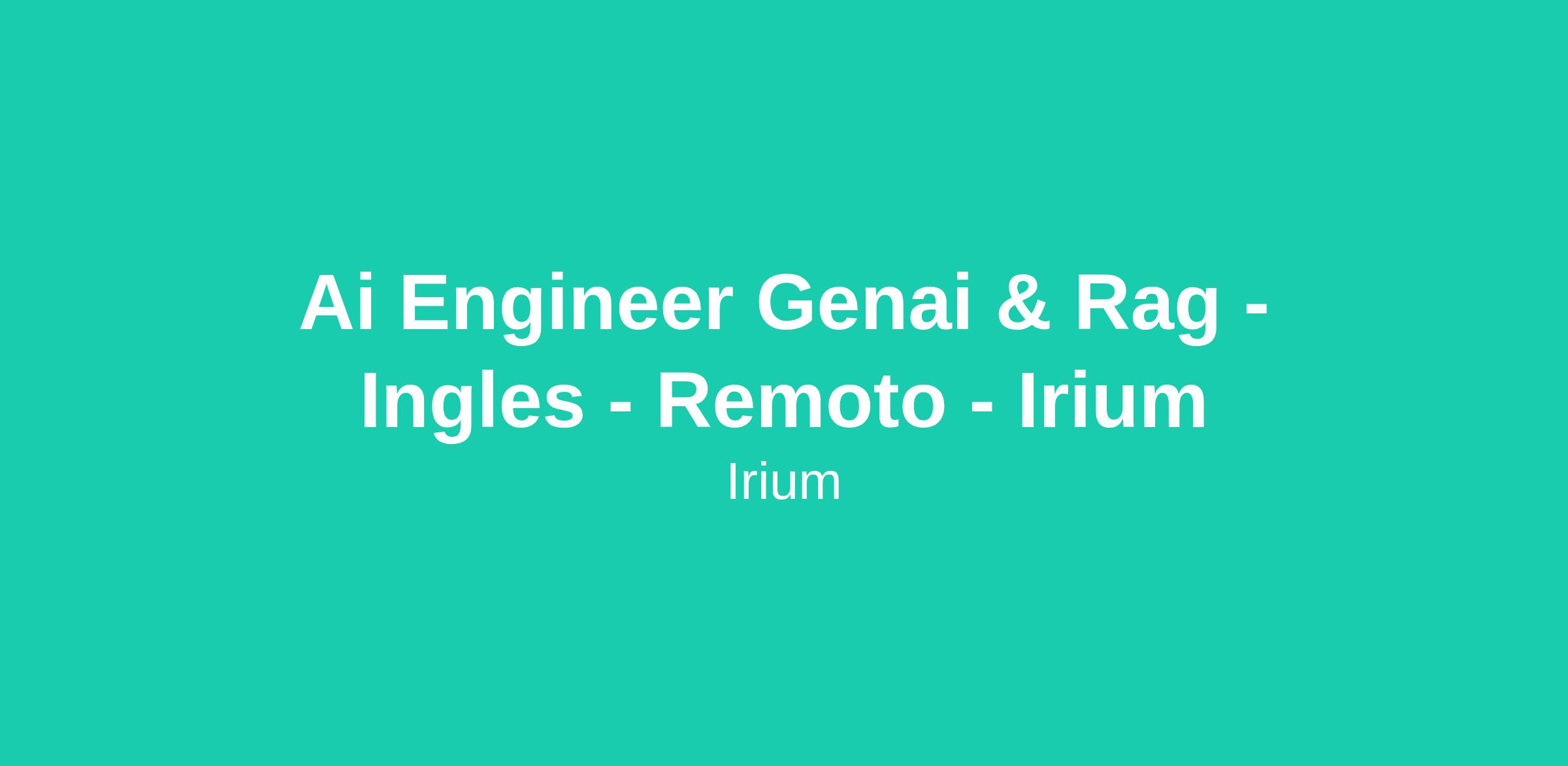 Ai Engineer Genai & Rag - Ingles - Remoto - Irium