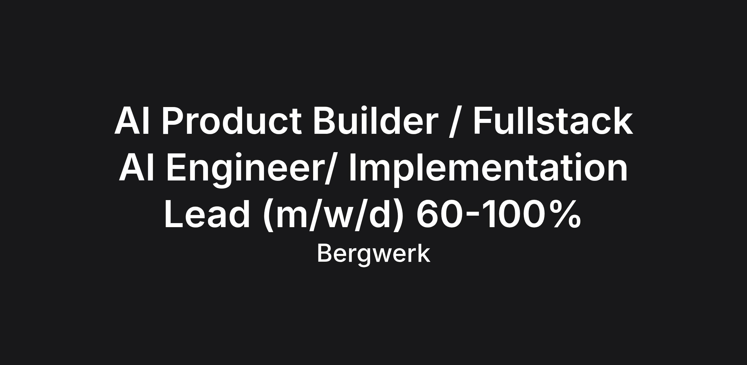 AI Product Builder / Fullstack AI Engineer/ Implementation Lead (m/w/d) 60-100%