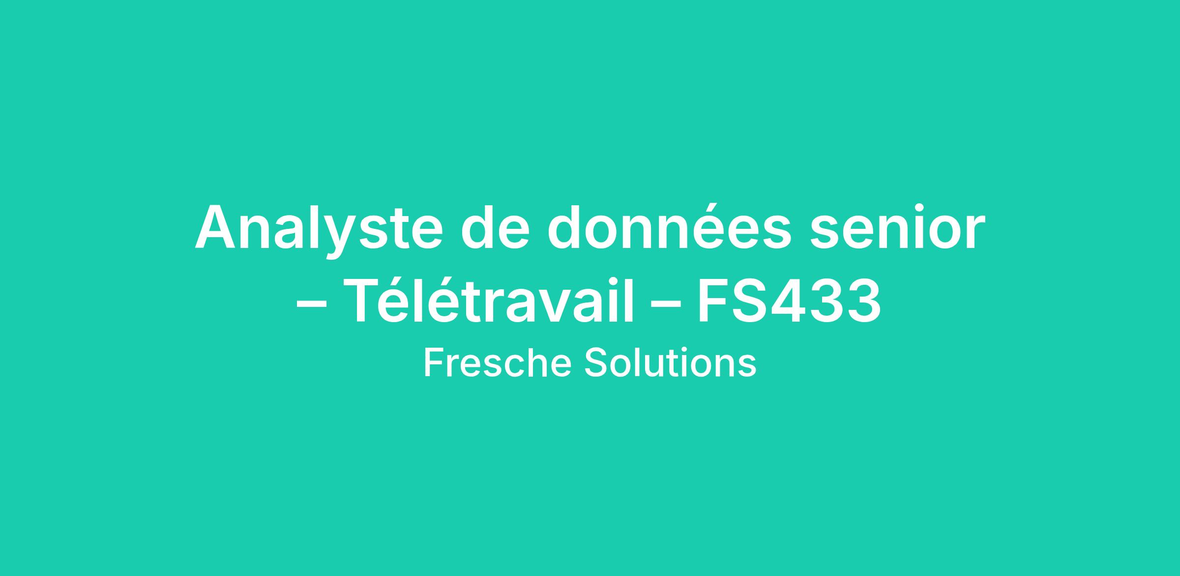 Senior Data Analyst – Remote – FS433