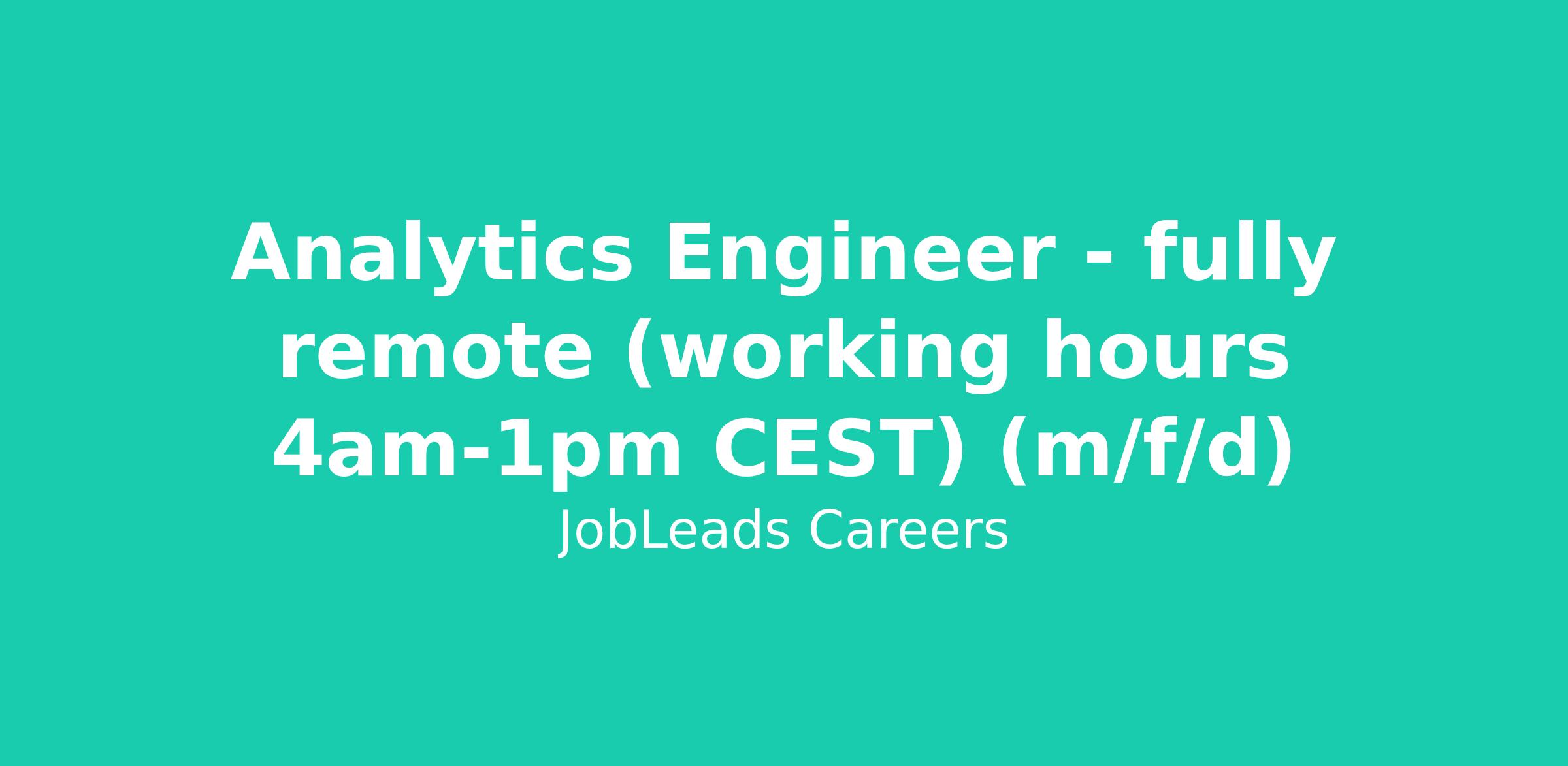 Analytics Engineer - fully remote (working hours 4am-1pm CEST) (m/f/d)
