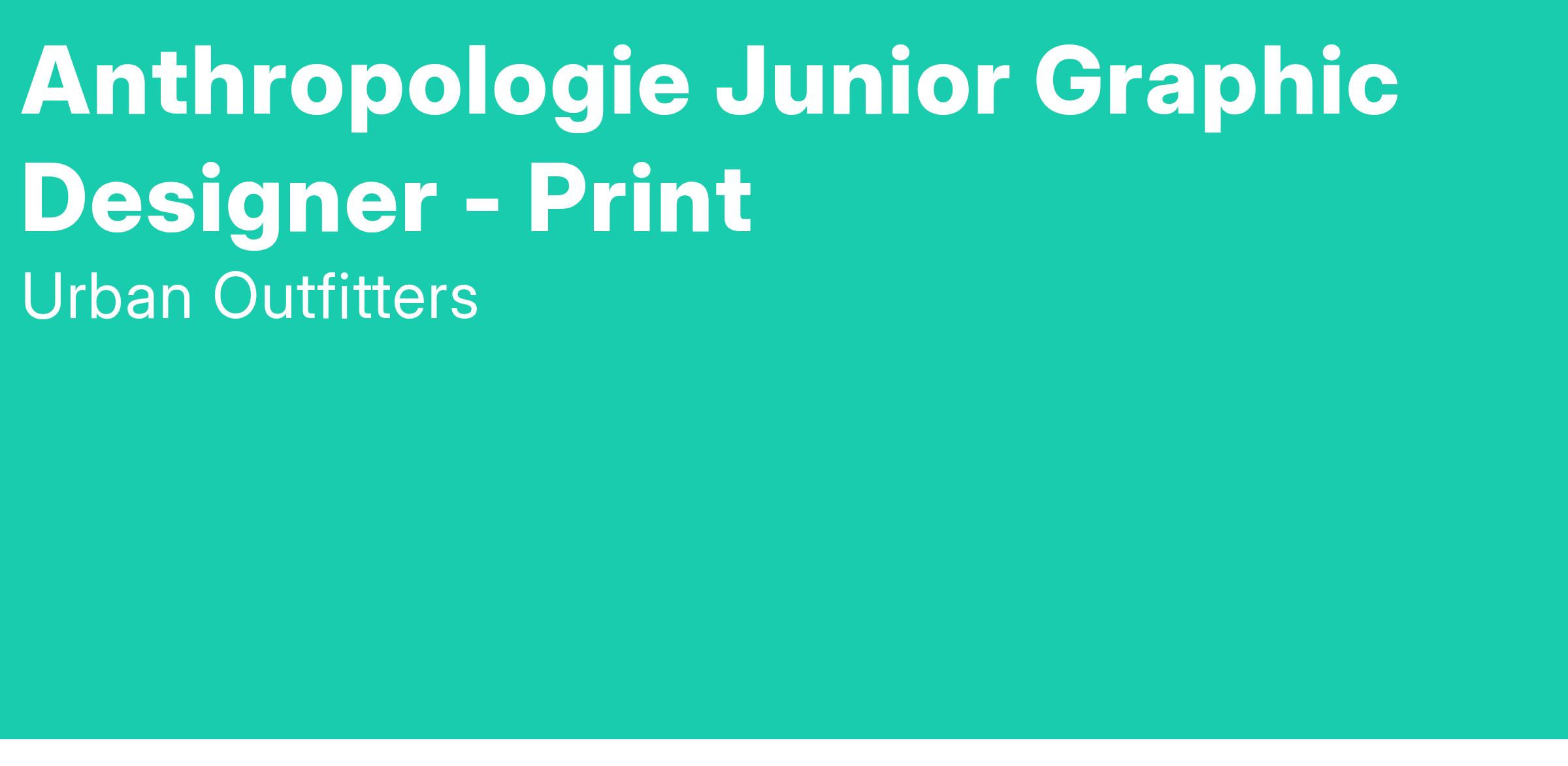 Anthropologie is looking for a Junior Graphic Designer to join the branding and print marketing art department. The ideal candidate is a self-starter, goal-oriented and a team player. This person primary objective is to learn, contribute and maintain the aesthetic of the Anthropologie brand and support the senior design staff with creative ideas, illustration, design, typography and in-house production.