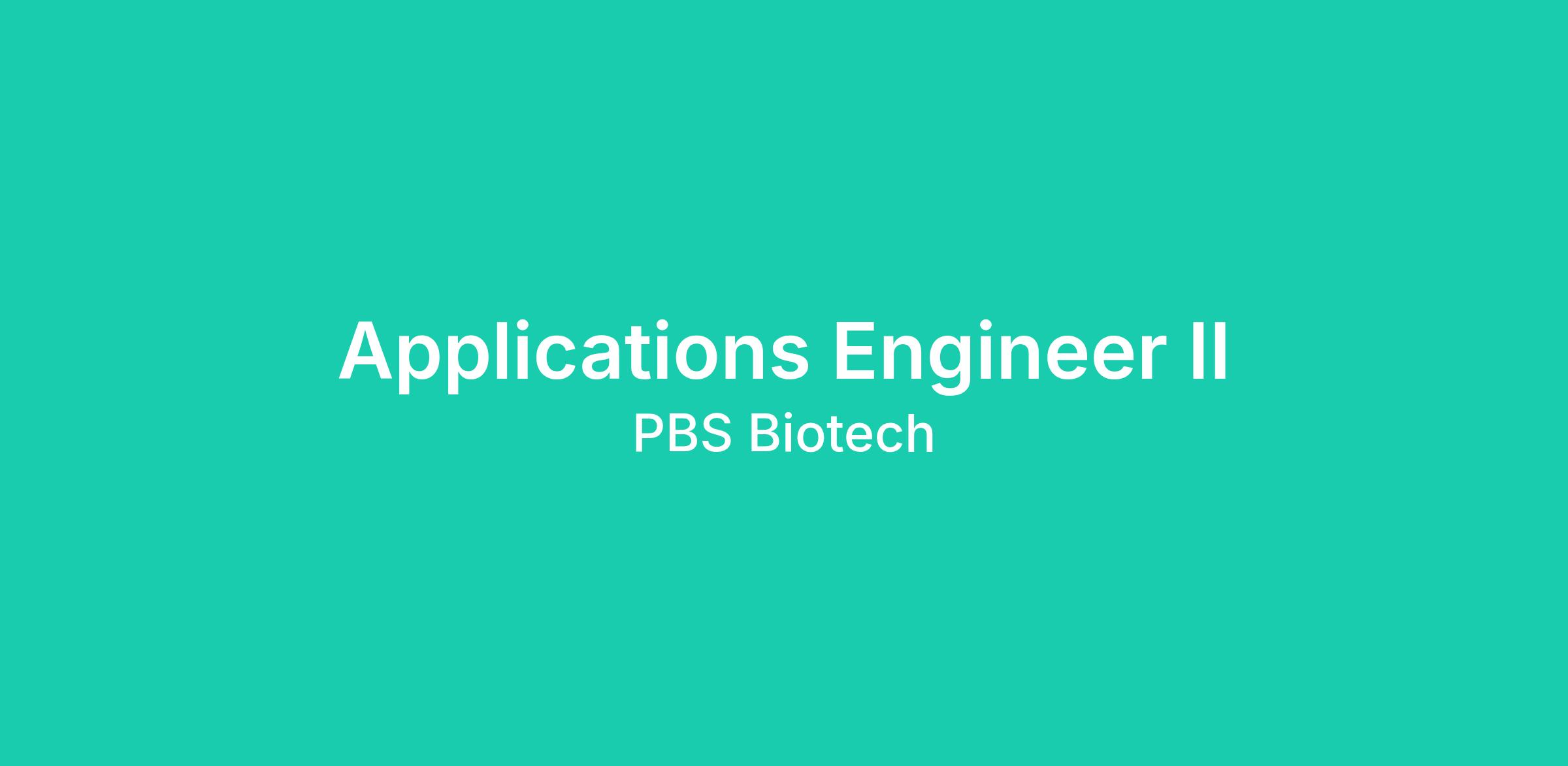 At PBS Biotech, we’re not just building technology — we’re helping bring life-changing therapies to patients faster.PBS Biotech is an innovative, fast-growing biotechnology company headquartered in Camarillo, California. We specialize in advanced single-use bioreactor systems that support cutting-edge cell therapy and biopharmaceutical applications. Our mission is to enable the next generation of life-saving therapies through scalable, efficient, and high-performance bioprocessing solutions.At PBS, you’ll be part of a collaborative and mission-driven team working at the forefront of biotechnology innovation.About the RoleWe are seeking a highly motivated Applications Engineer II to serve as a key technical partner to our global customer base. This role is ideal for someone who enjoys combining technical expertise, client interaction, and problem-solving in a dynamic and fast-paced environment.As an Applications Engineer, you will play a critical role in supporting customers with the successful use of PBS bioreactor systems, contributing to product improvements, and partnering closely with internal teams to drive innovation and customer success.This is a remote position with travel required.What You’ll Do- Serve as a technical expert supporting customers on PBS bioreactor systems and bioprocess optimization