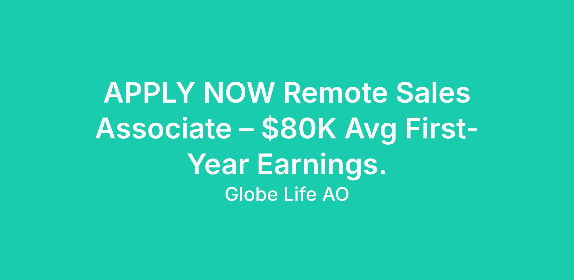 Globe Life AO is expanding its remote sales team! We’re looking for motivated, goal-driven individuals to start a high-earning sales career from home. Full training, mentorship, and leadership growth tracks are provided — perfect for first-time remote workers, career changers, or anyone looking to advance in sales.
