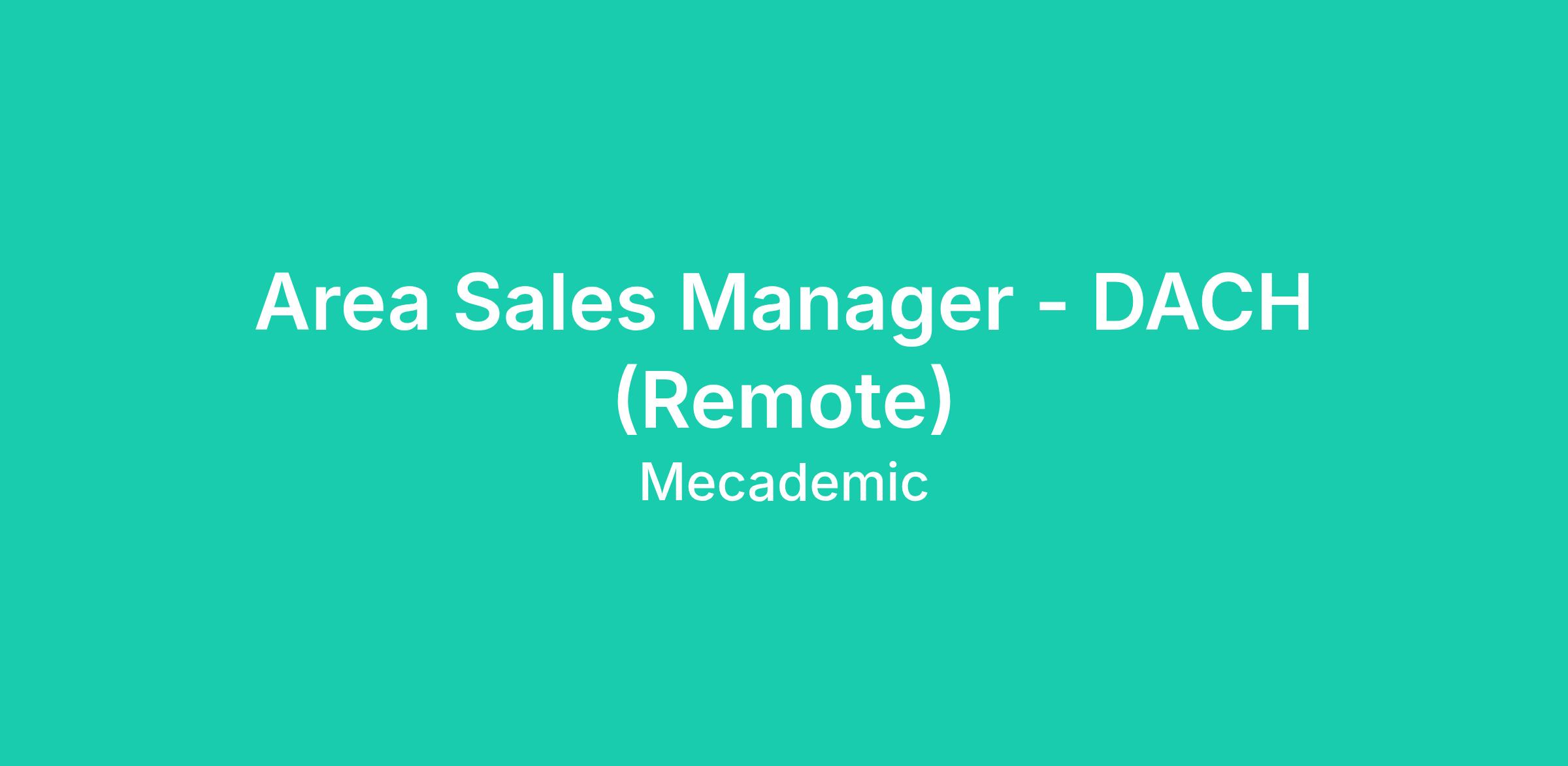 Area Sales Manager - DACH (Remote)