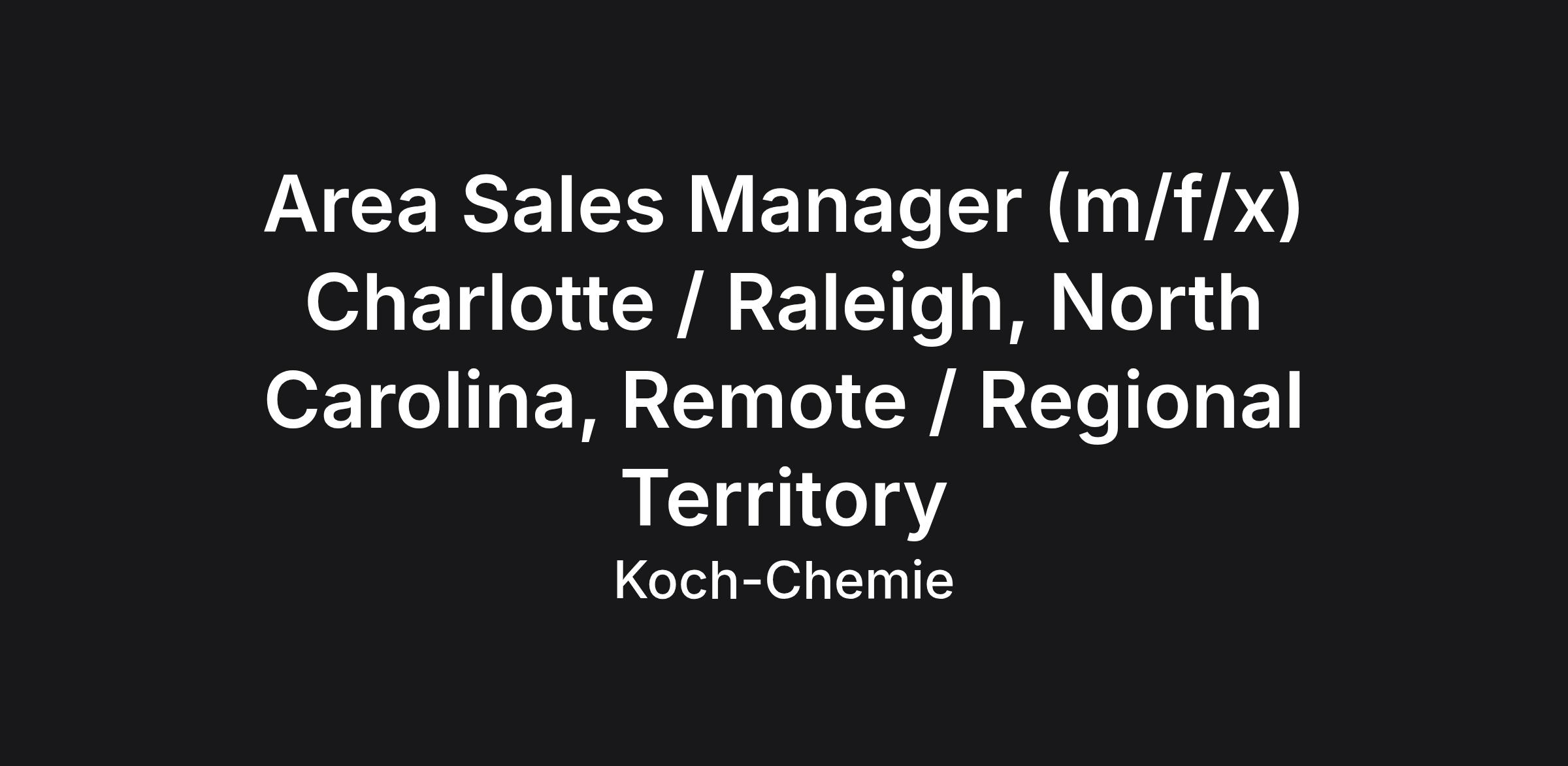 Area Sales Manager (m/f/x) Charlotte / Raleigh, North Carolina, Remote / Regional Territory