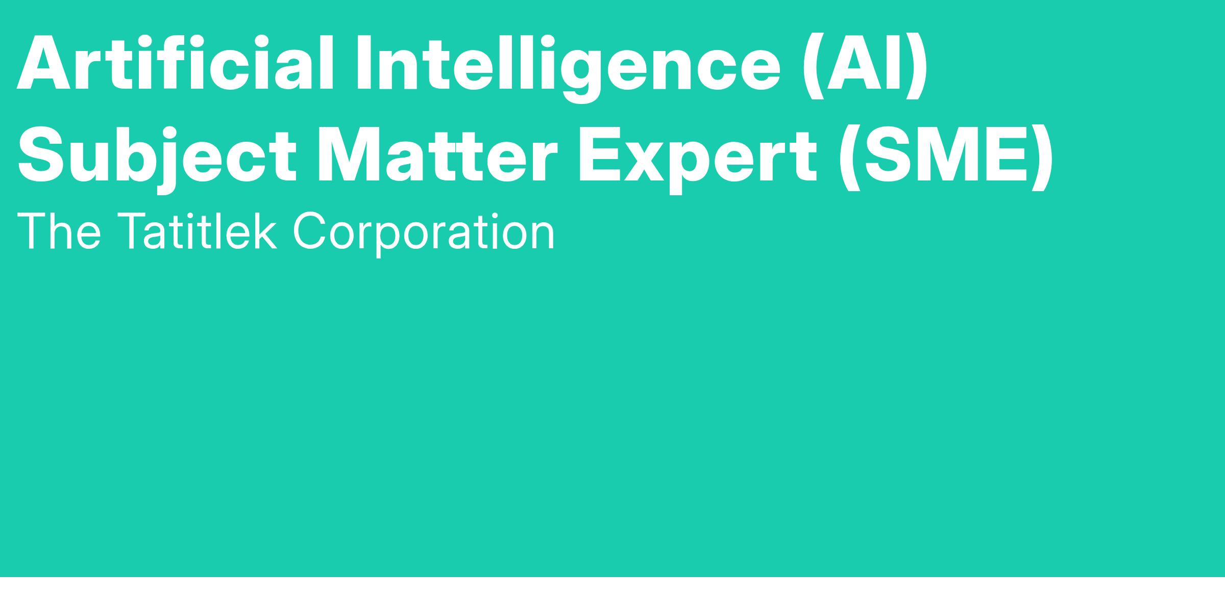 Artificial Intelligence (AI) Subject Matter Expert (SME)