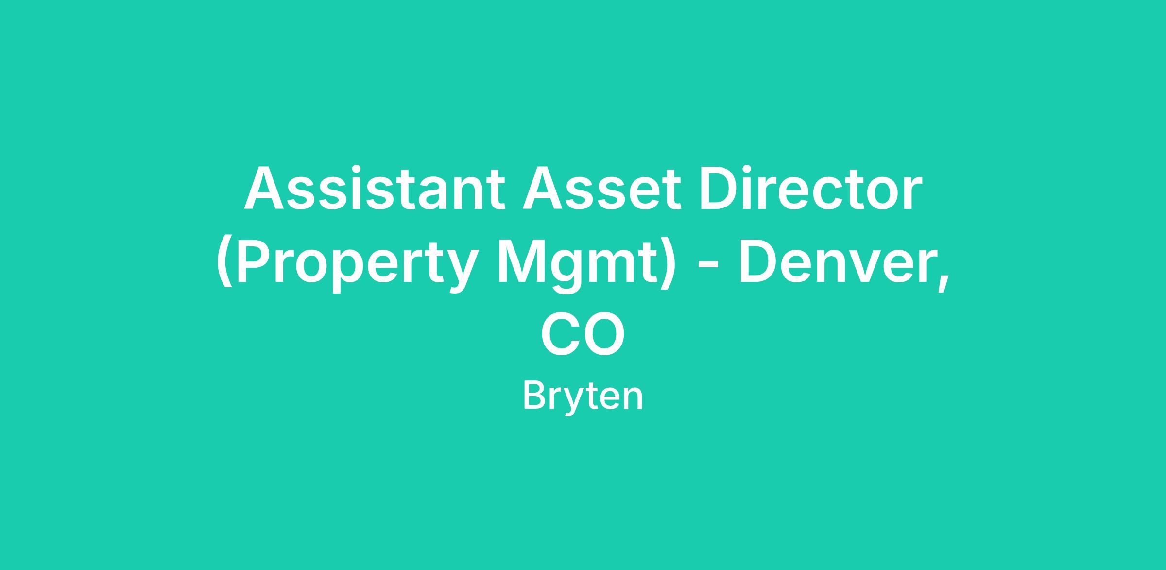 DescriptionWe're excited to announce an Assistant Asset Director (Property Mgmt) ($95k - $105K/yr) position available at Denver, CO! We are committed to creating an inspiring and inclusive experience, celebrating our diverse culture, and offering a variety of benefits and opportunities. Be a part of the journey of empowerment and engagement.