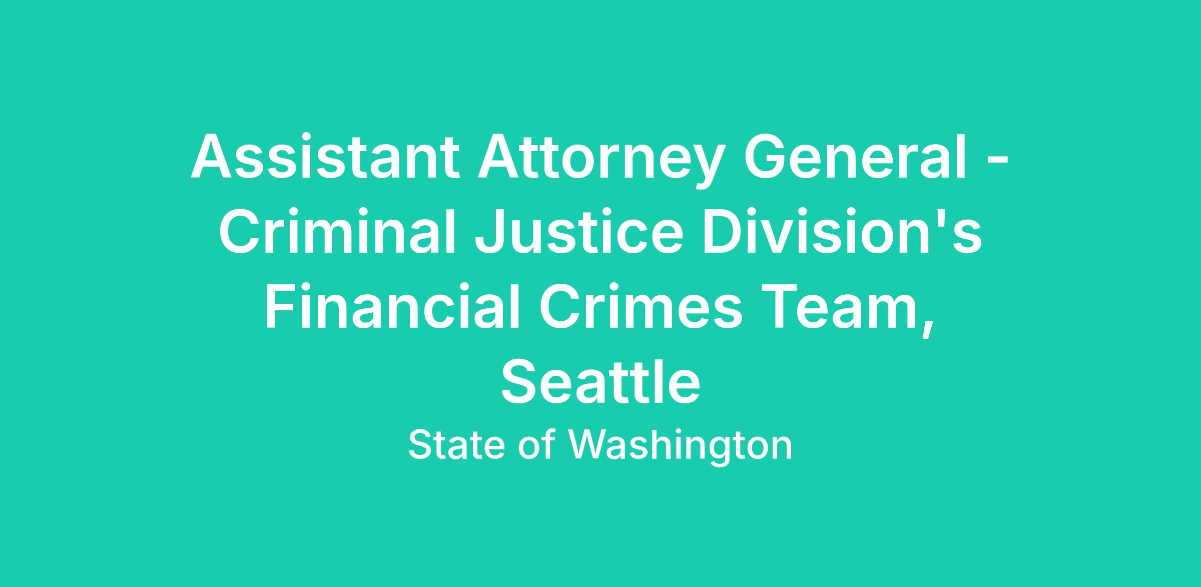 The Bob Keppel Criminal Justice Division (CRJ) of the Washington State Attorney General’s Office has an exciting and rewarding opportunity in its downtown Seattle office for an attorney interested in investigating and prosecuting financial crimes!