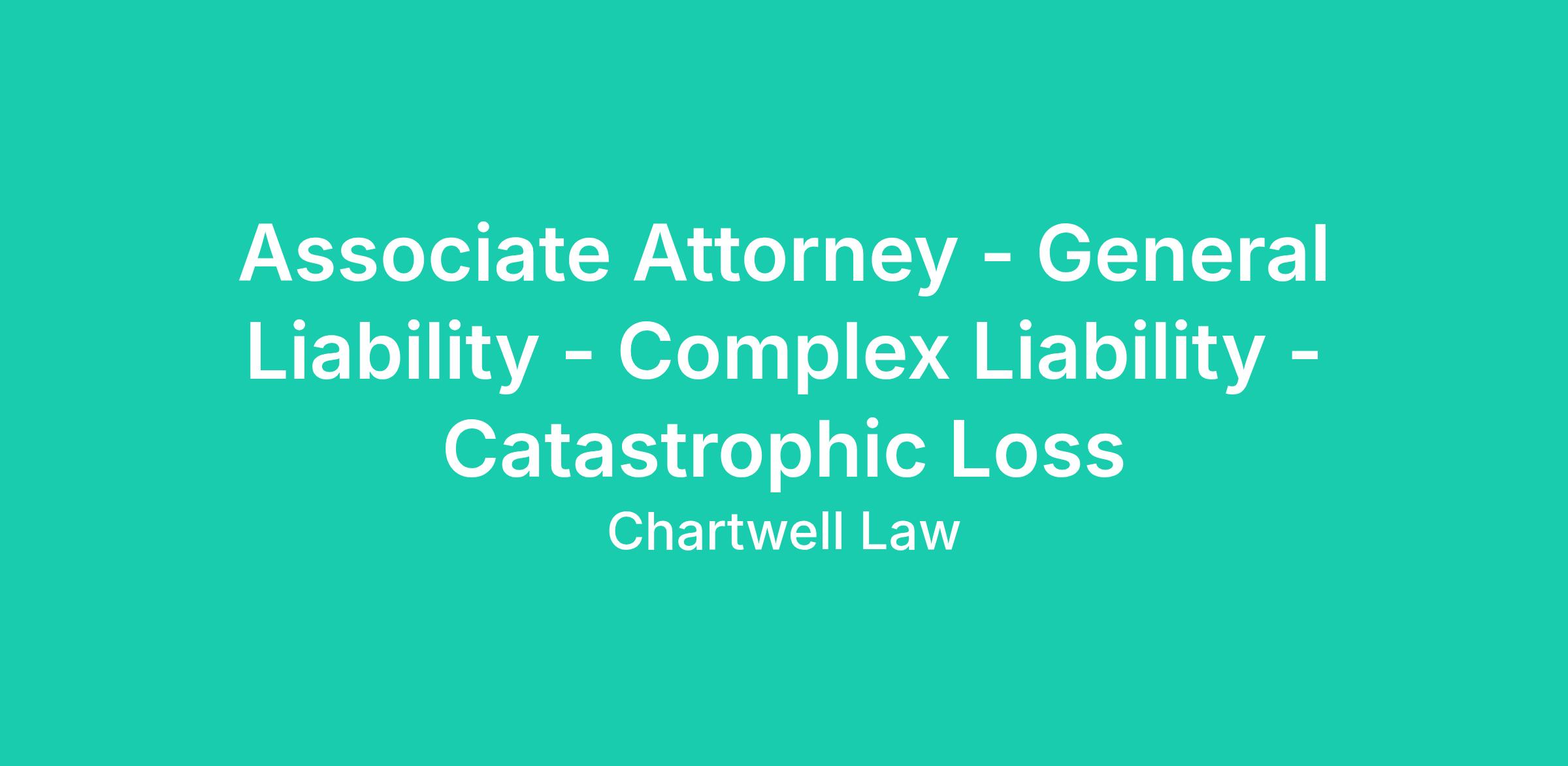 Associate Attorney - General Liability - Complex Liability - Catastrophic Loss