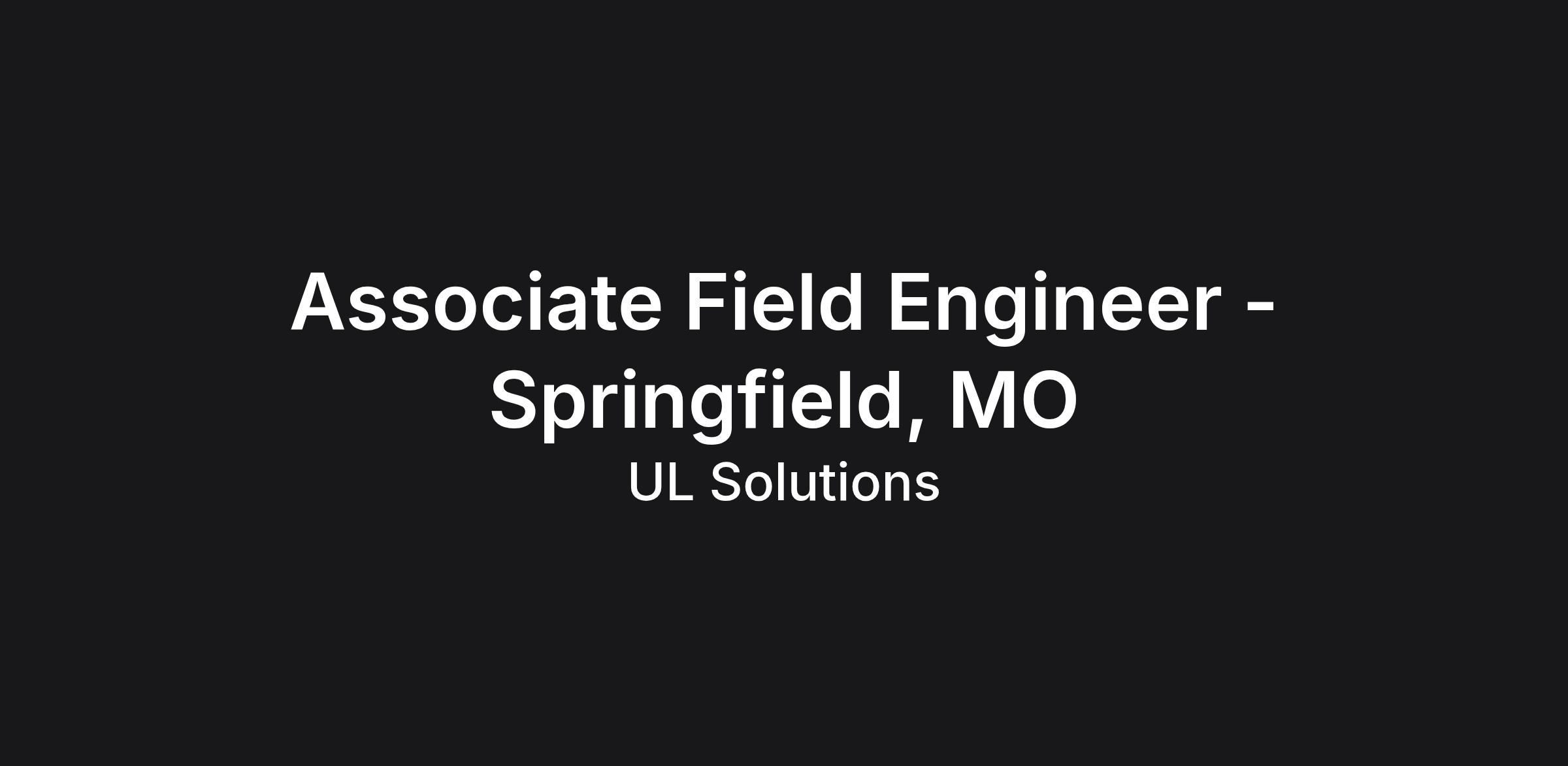 ResponsibilitiesUL Field Engineering Team is hiring in the Springfield, MO Area. A Field Engineer performs safety and non-safety certification inspections, audits of quality systems and field evaluations in accordance with the required performance standards and requirements.