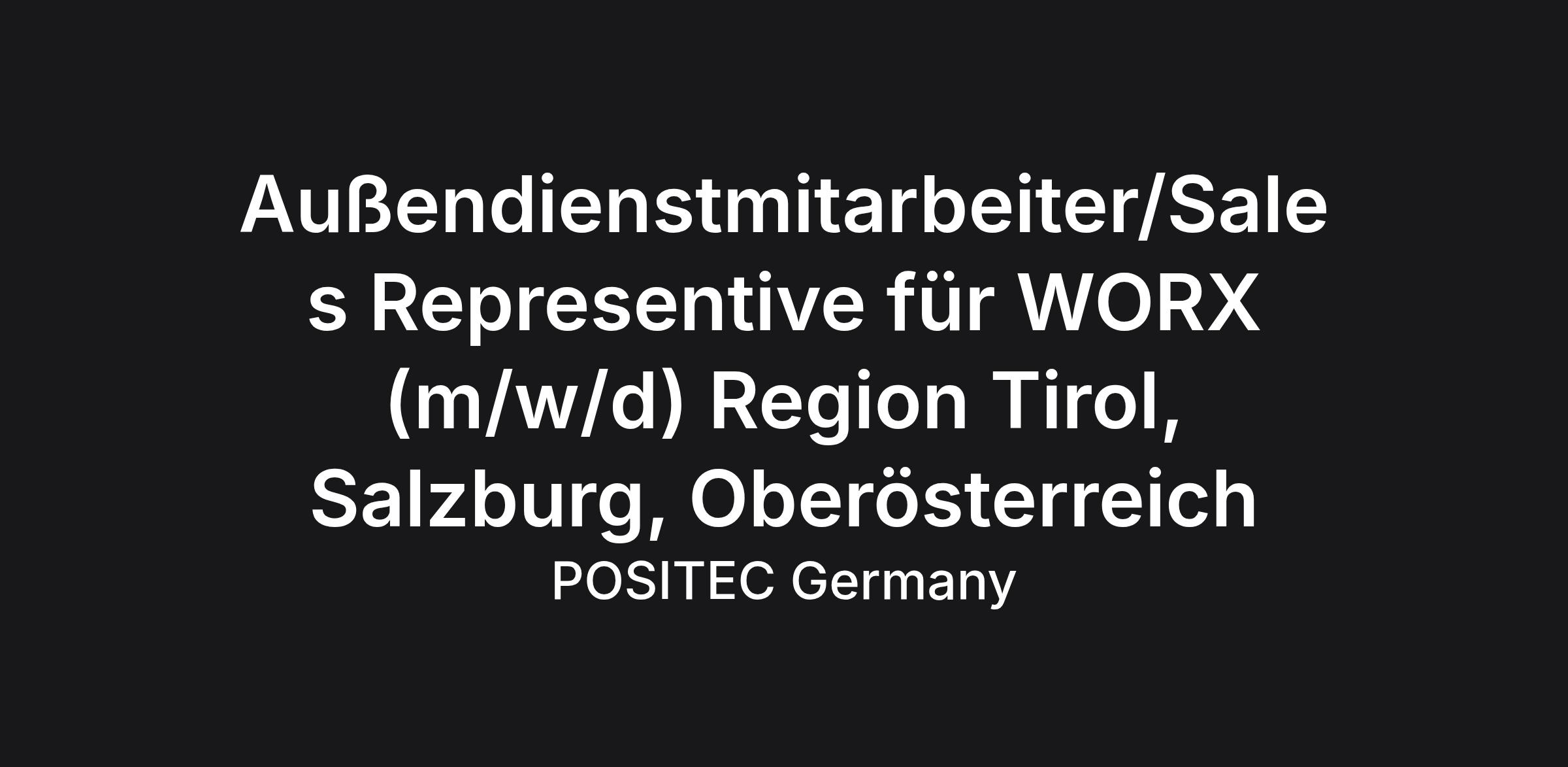 Außendienstmitarbeiter/Sales Representive für WORX (m/w/d) Region Tirol, Salzburg, Oberösterreich