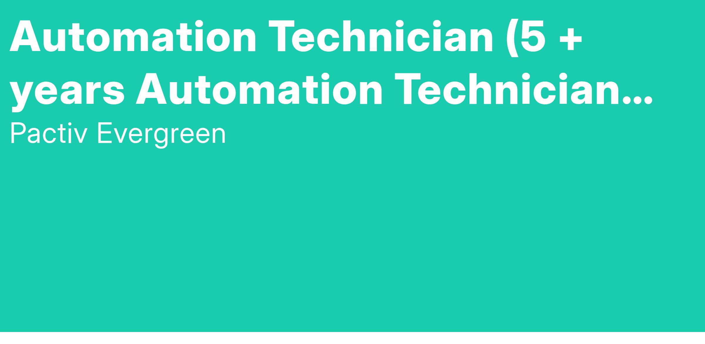 Automation Technician - HIRING IMMEDIATELY - Bridgeview, IL