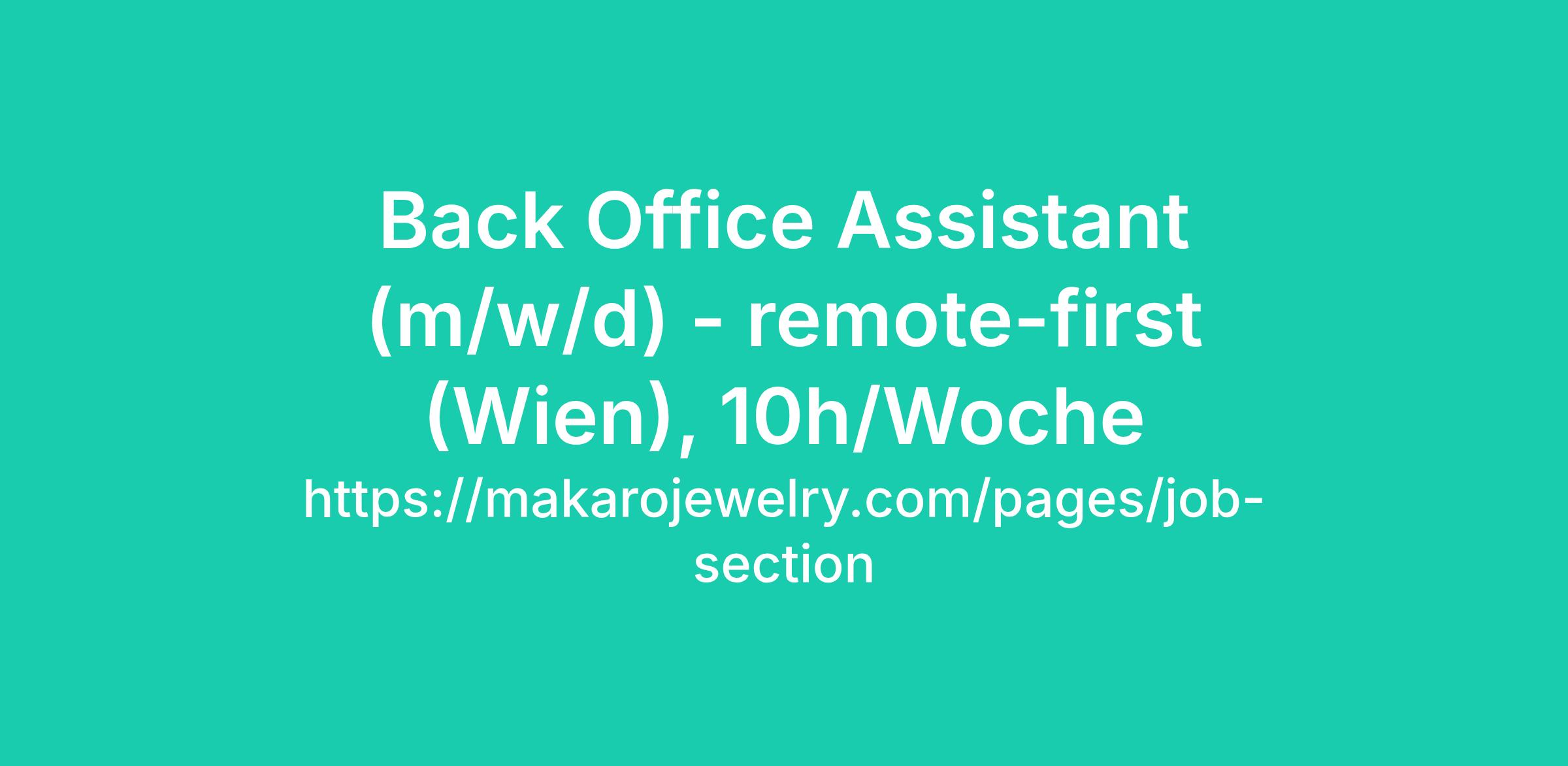 Back Office Assistant (m/w/d) - remote-first (Wien), 10h/Woche