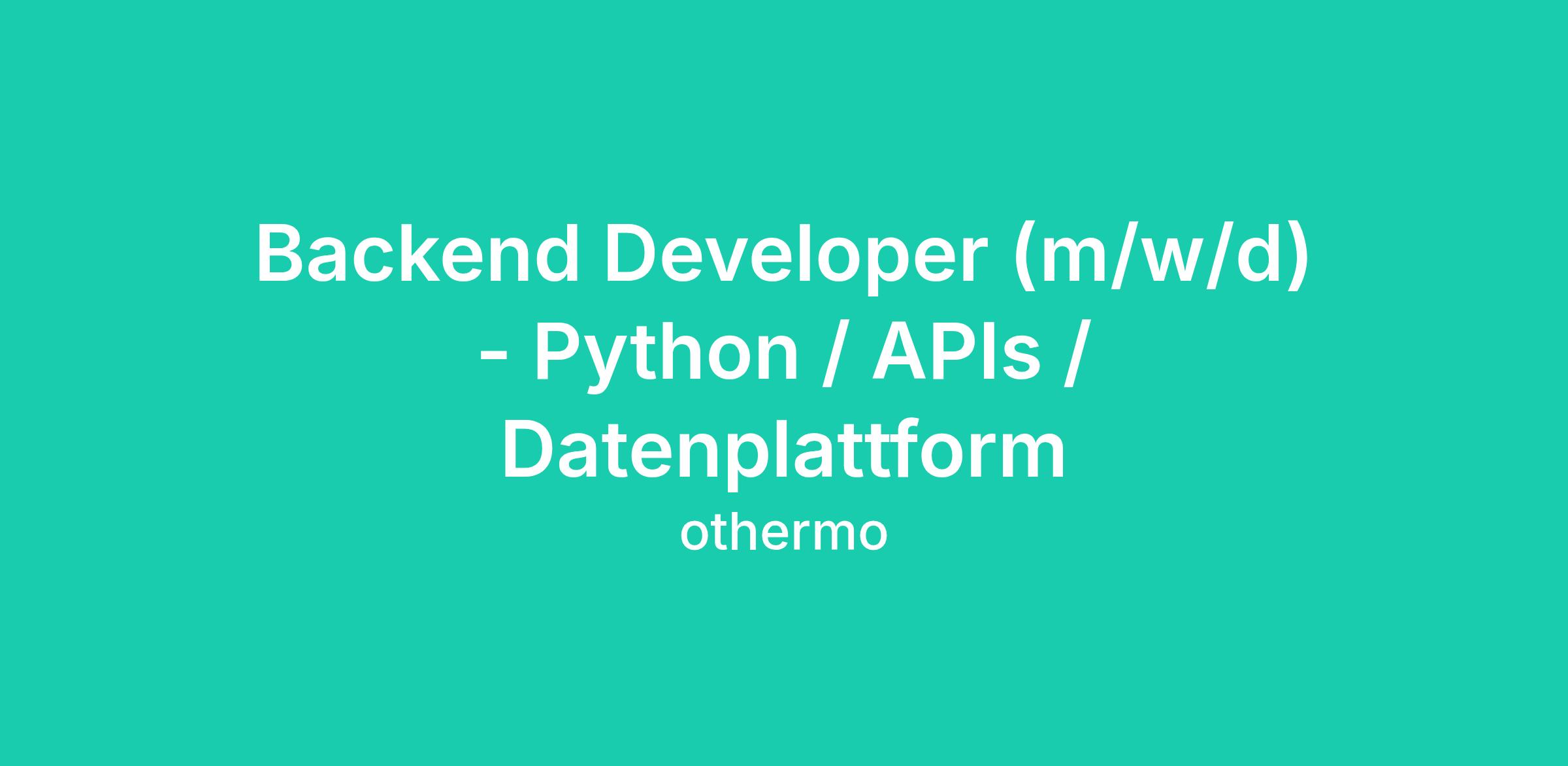 Du entwickelst, wartest und skalierst unsere Backend-Systeme und APIs (Python) für eine robuste IoT-Plattform mit klarem Fokus auf Datenverarbeitung, Performance, Security und stabile Produktion.