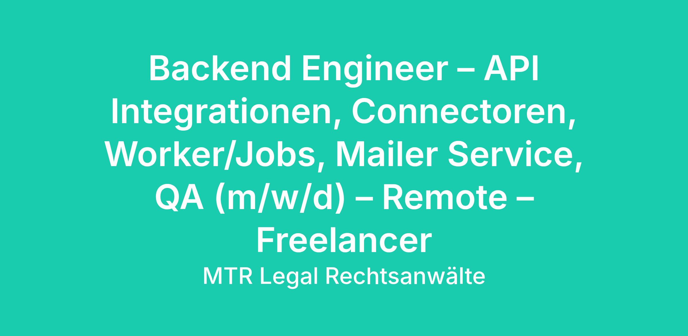 Backend Engineer – API Integrationen, Connectoren, Worker/Jobs, Mailer Service, QA (m/w/d) – Remote – Freelancer