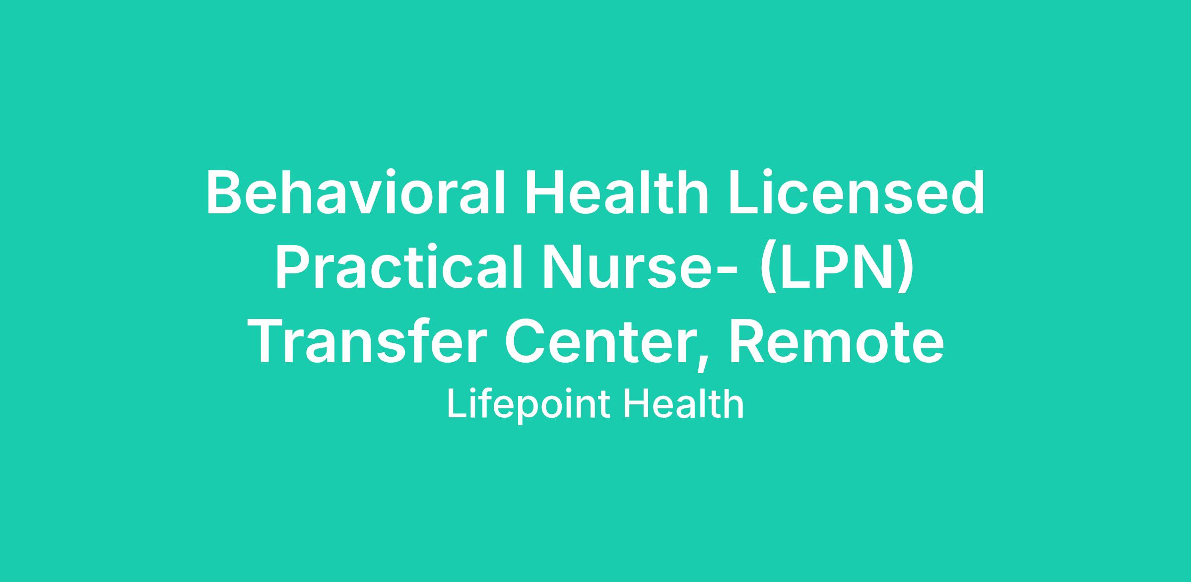 Behavioral Health Licensed Practical Nurse- (LPN) Transfer Center, Remote