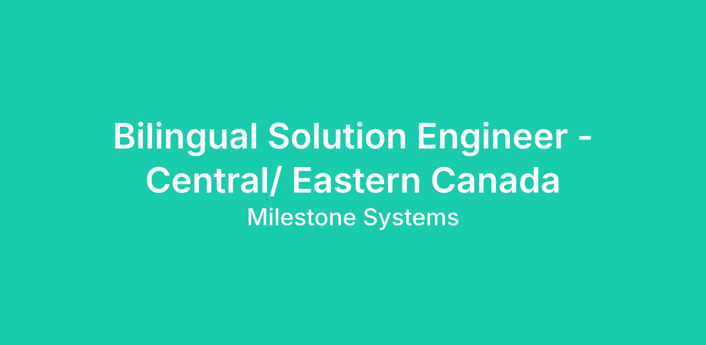 Milestone Systems is looking for a bilingual Solution Engineer (SE) to join the Canadian sales team. We are looking for a tech-savvy, sales-savvy, and customer service-oriented Solution Engineer (SE) to work together with the Channel Business Managers (CBM), VSaaS Business Manager (VBM), and Analytics Business Manager (ABM) to increase sales in the region. The Solution Engineer (SE) will bring technical expertise on Milestone products, on technology partner products, and latest technical trends in the security industry. The ideal candidate must be bilingual and reside in Central or Eastern Canada.
