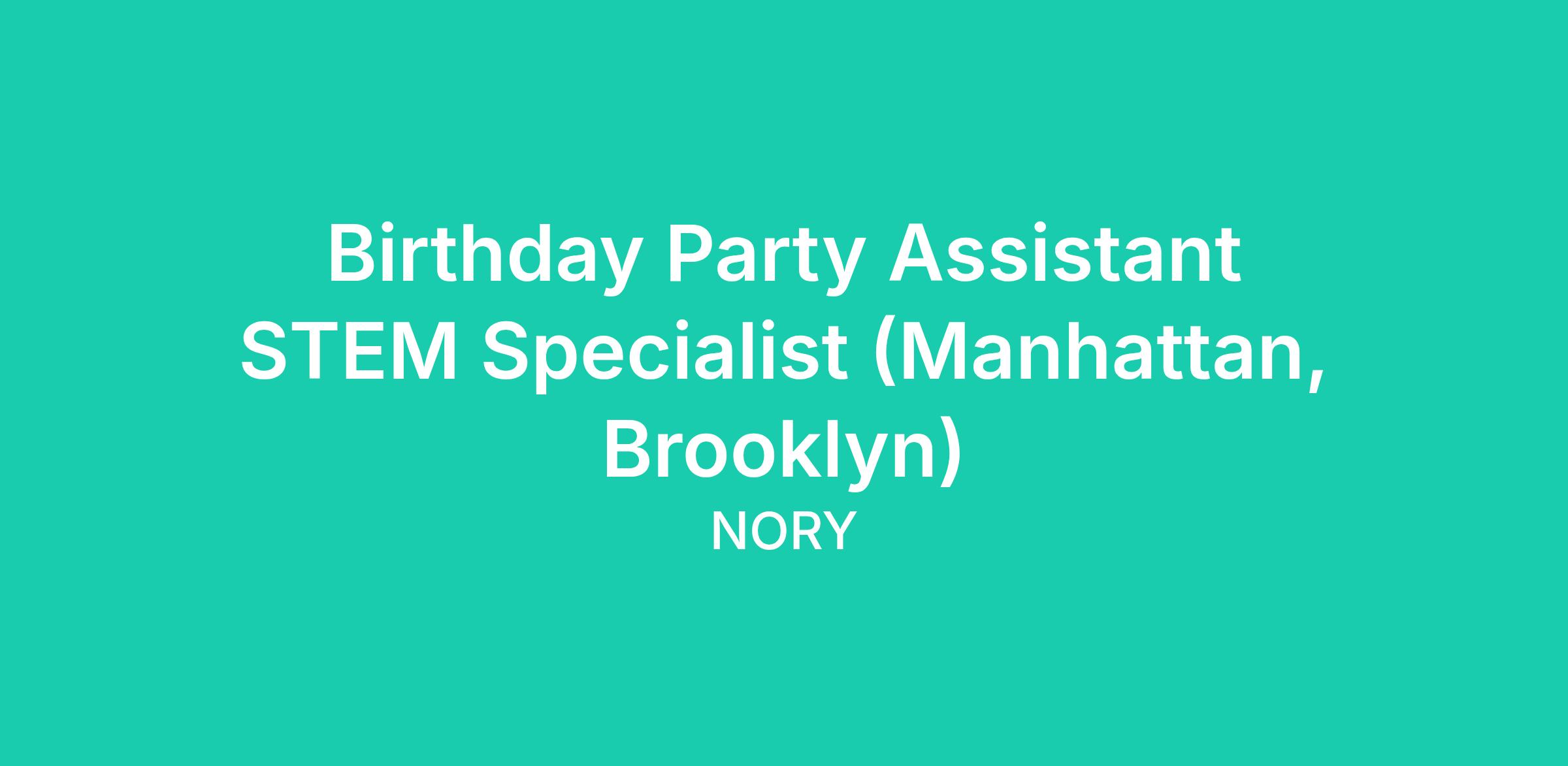 Are you enthusiastic about engaging kids through hands-on STEM activities and high-energy birthday celebrations? We’re looking for Birthday Party STEM Assistant Specialists who are upbeat, supportive, and excited to help create unforgettable birthday experiences. At NORY, we work together to bring joy, creativity, and meaningful learning moments to every celebration, making each child feel special on their big day.