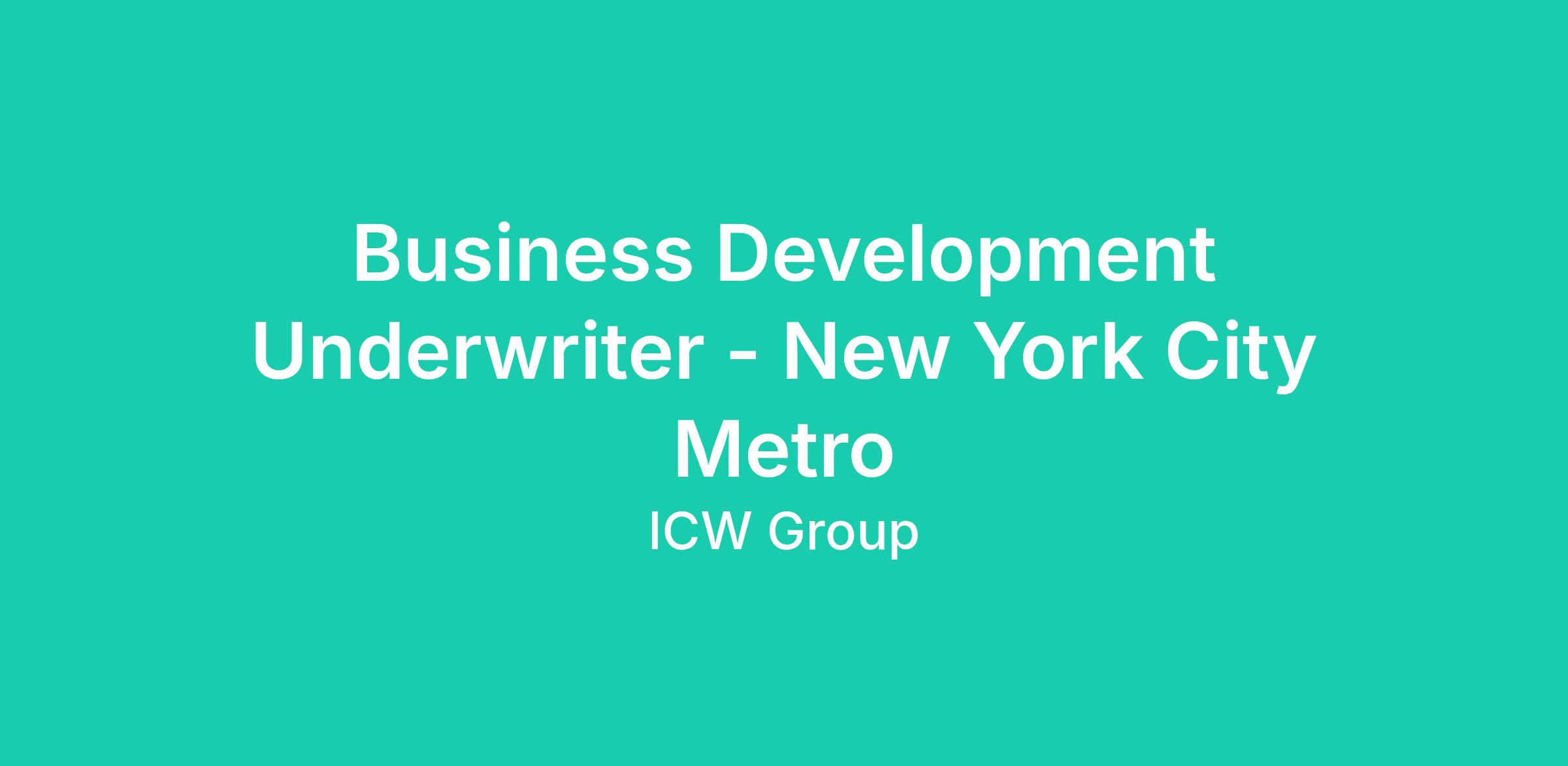 As a Business Development Underwriter at ICW Group you are the main point of contact for agents and brokers. Overseeing both underwriting and marketing initiatives ensures you grow to become your agents' business partner. You decide how to go about fostering relationships and building your book of business.
