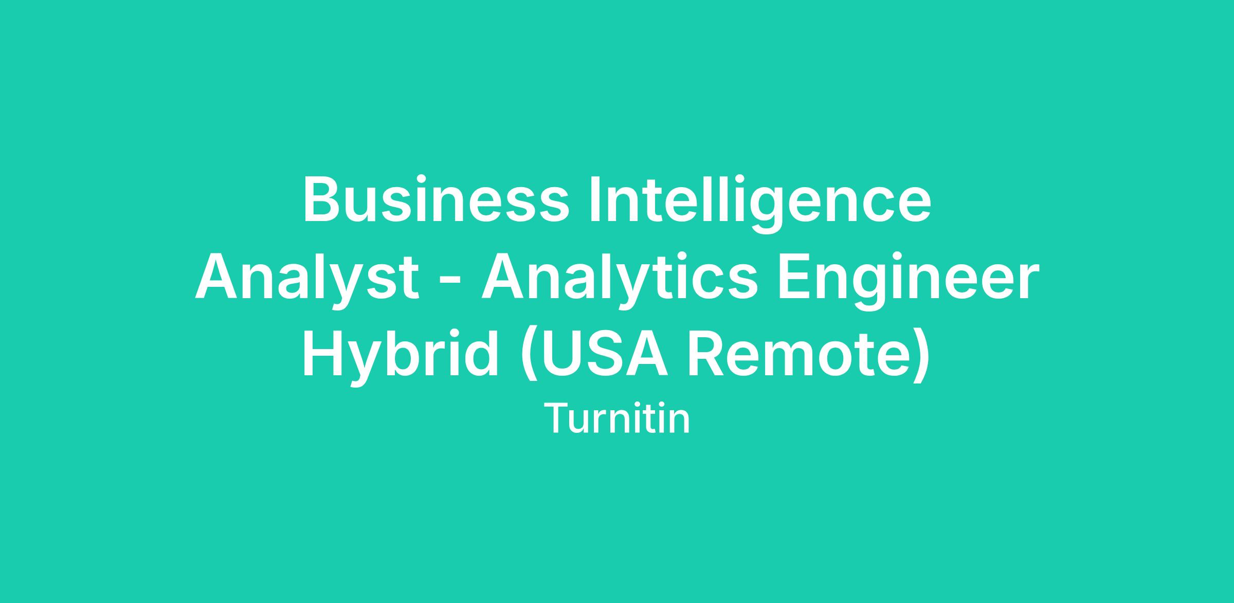 Business Intelligence Analyst - Analytics Engineer Hybrid (USA Remote)