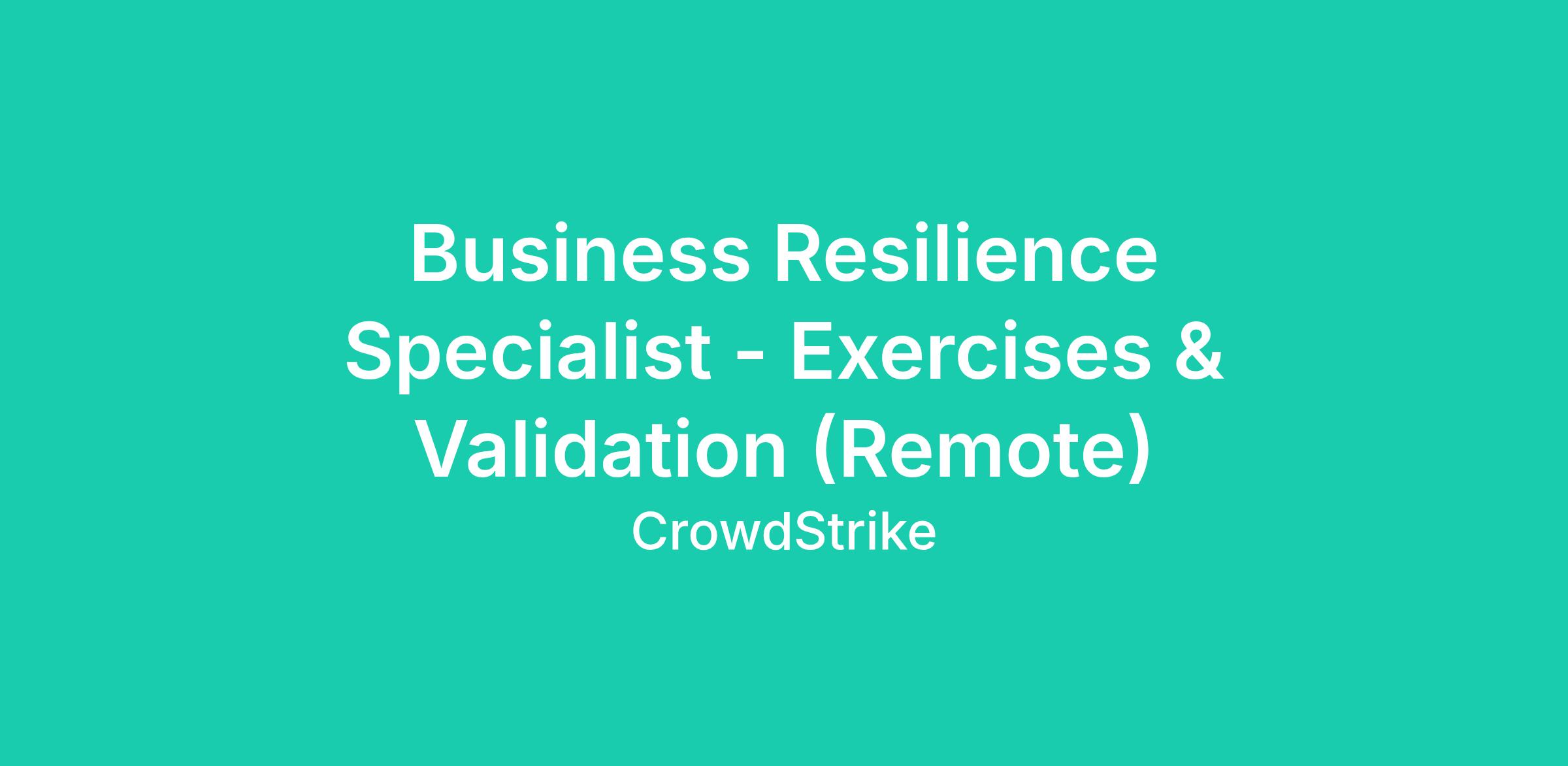 The Exercise Specialist supports CrowdStrike’s Business Resilience (BR) department within the Resilience Organization. This role is focused on the design, coordination, facilitation, and evaluation of traditional business continuity and crisis response exercises. The Exercise Specialist partners closely with business, crisis, and product teams to validate preparedness, identify gaps, and drive continuous improvement.