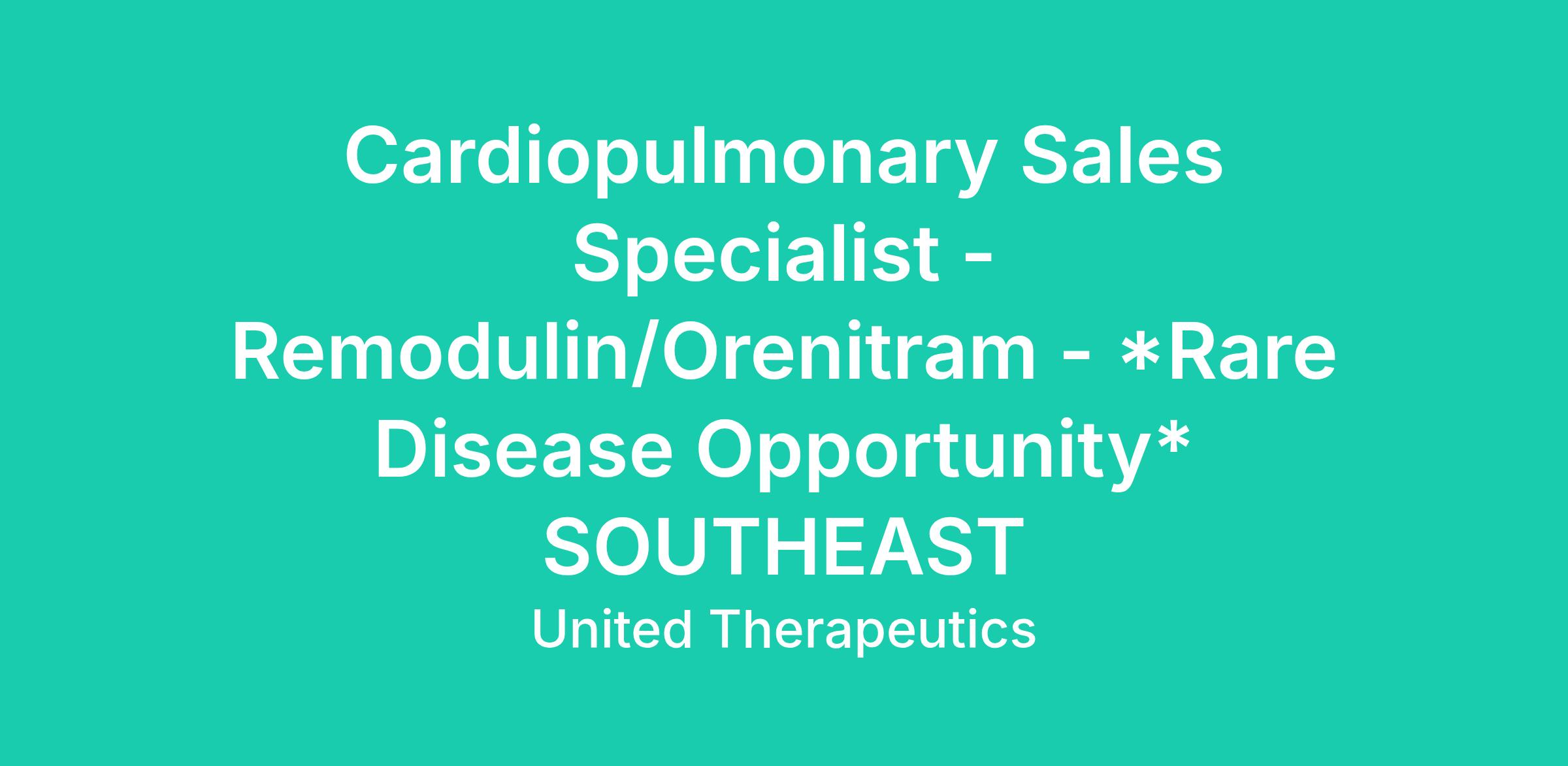 Are you ready to make a real impact in patients’ lives? As a Remodulin/Orenitram Cardiopulmonary Specialist (ROCPS), you’ll play a vital role in supporting patients living with pulmonary arterial hypertension (PAH). You’ll focus on our parenteral and oral therapies—Remodulin® and Orenitram®—while also serving as a trusted resource for healthcare professionals. We’re looking for driven, patient-focused individuals who are eager to educate, build strong partnerships, and deliver meaningful results.