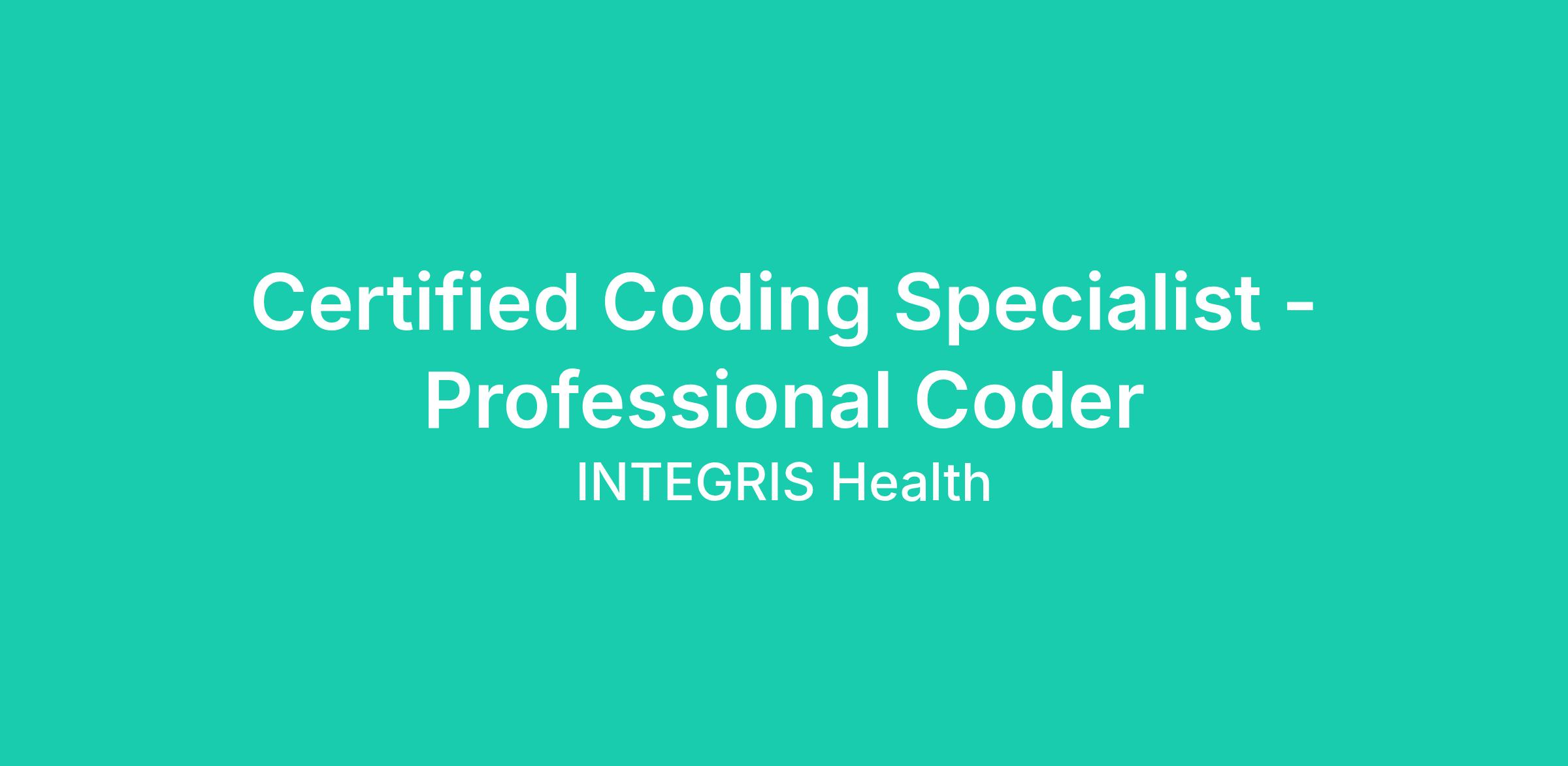 DescriptionINTEGRIS Health, Oklahoma’s largest not-for-profit health system has a great opportunity for a Certified Coding Specialist in Oklahoma City, OK. In this position, you’ll work Full-time with our team providing exceptional care to those who have entrusted INTEGRIS Health with their healthcare needs. If our mission of partnering with people to live healthier lives speaks to you, apply today, and learn more about our increased compensation plans and recently enhanced benefits package for all eligible caregivers such as front-loaded PTO, 100% INTEGRIS Health paid short-term disability, increased retirement match, and paid family leave. We invite you to join us as we strive to be The Most Trusted Partner for Health.
