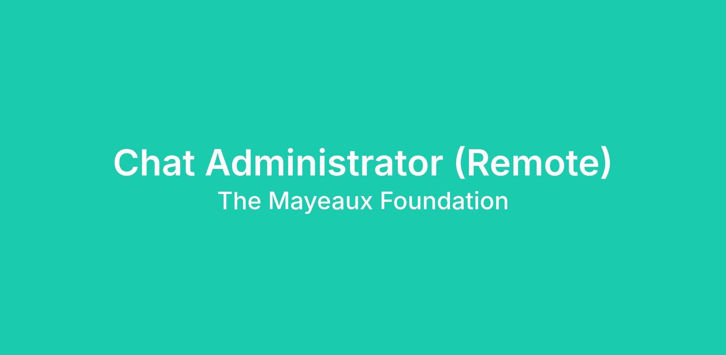 - The "Chat Administrator" position is a part-time, remote, and flexible position that entails moderating the chat of the official Discord of The Mayeaux Foundation. This can include but is not limited to: 1) Deleting messages made by users that violate the rules of the Discord server. 2) Banning users that have multiple and repeat violations of the rules of the Discord server. 3) Muting users that have violated the rules of the Discord server. 4) Investigating reports made by users about violations of the rules of the Discord server. 5) Managing the Chat Moderators. 6) Managing the Discord server when higher levels of management are not present.