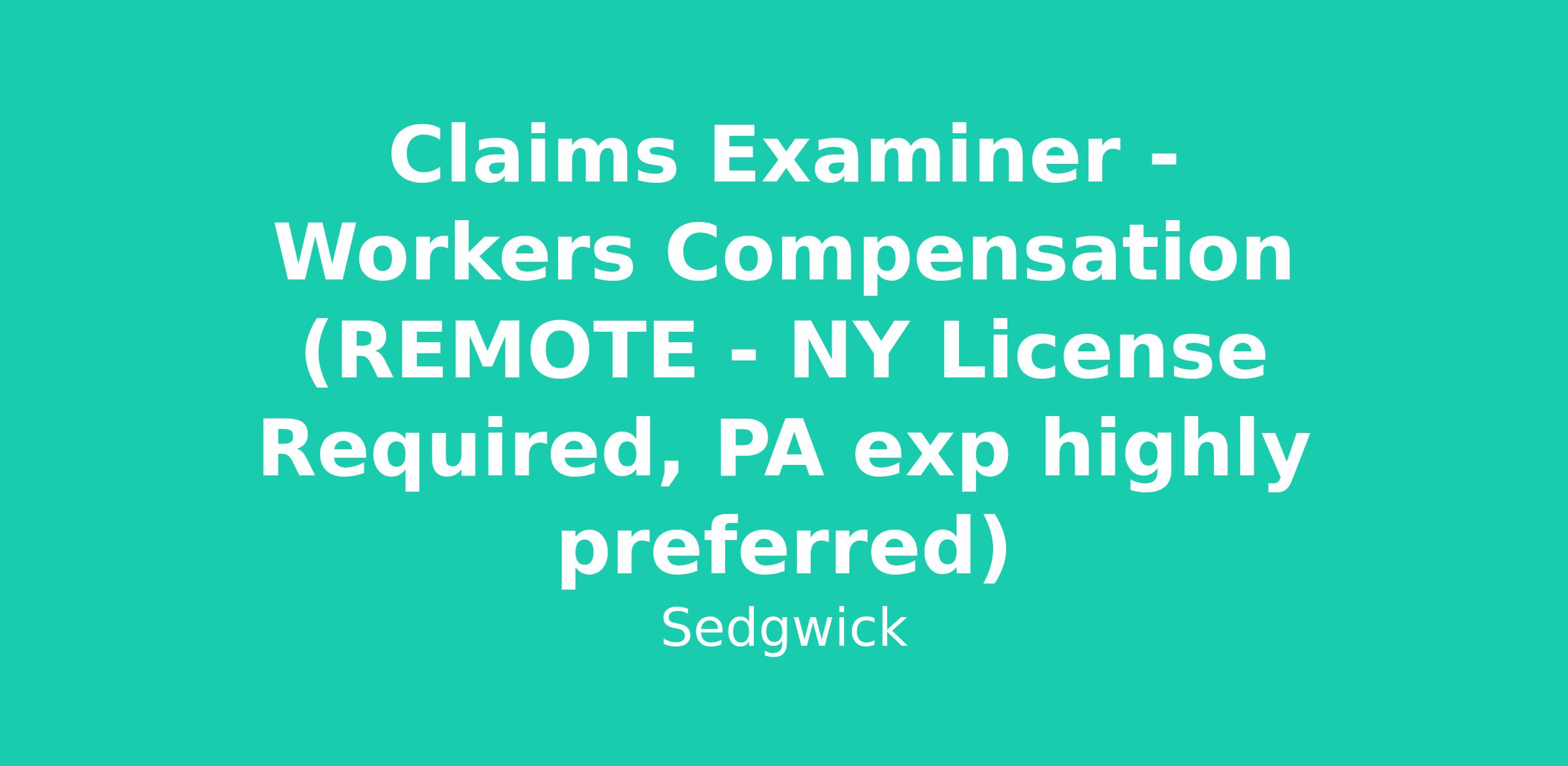 Claims Examiner - Workers Compensation (REMOTE - NY License Required, PA exp highly preferred)A valid New York Workers’ Compensation Adjuster License is required. Additional experience handling claims in other Northeast states—particularly Pennsylvania—is strongly preferred