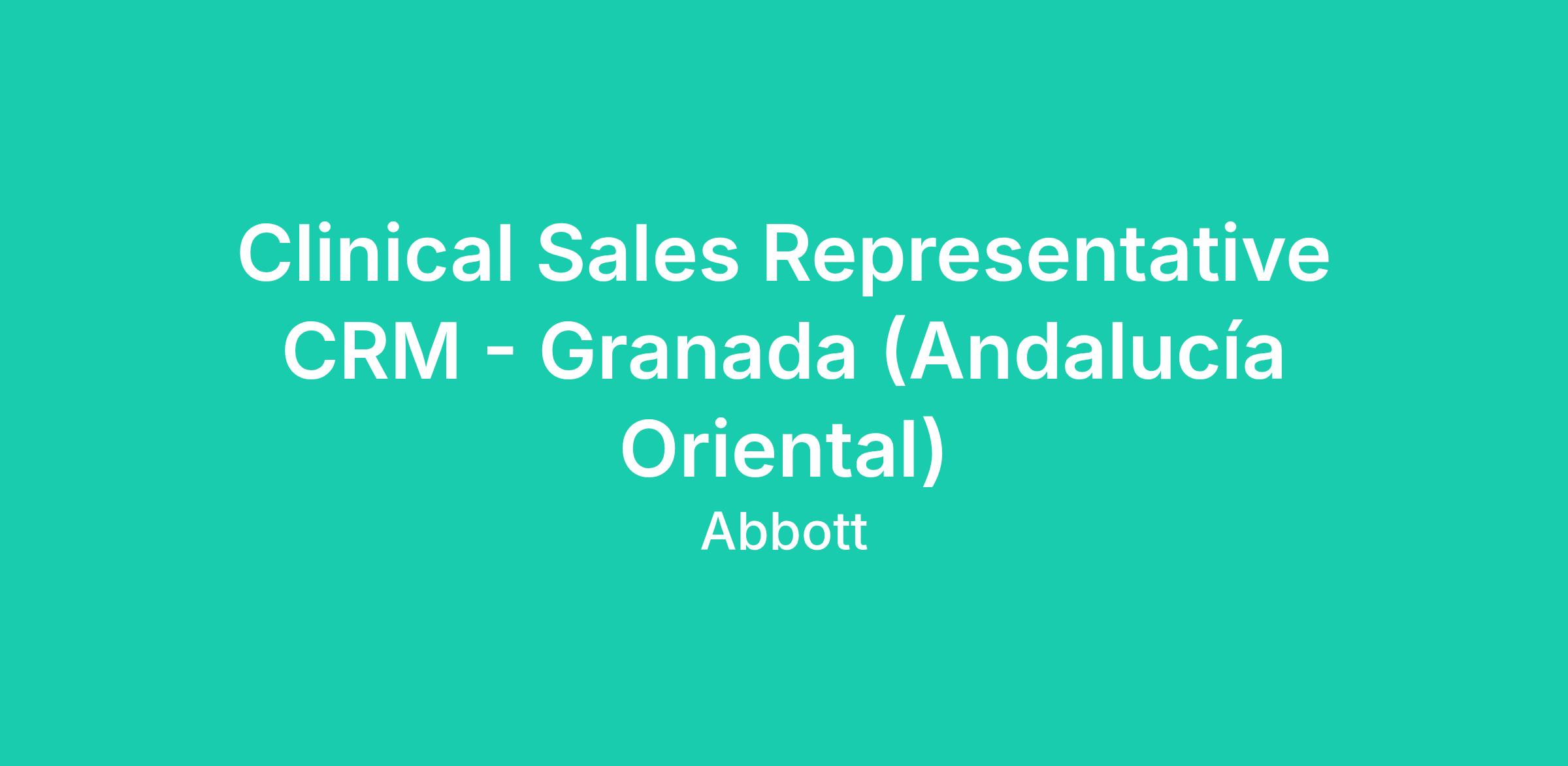 POSITION: Clinical Sales Representative CRM – Granada (Andalucía Oriental)