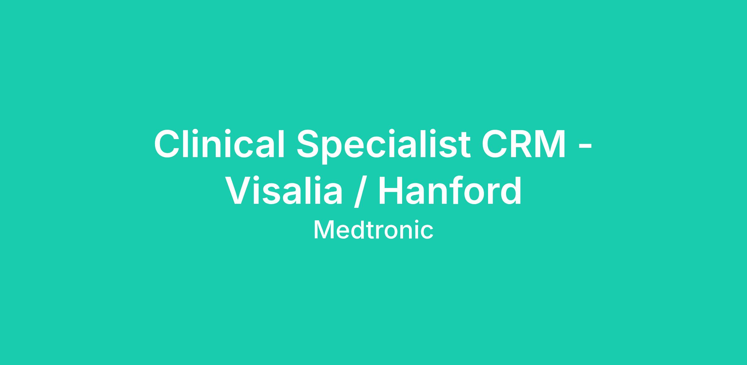 Clinical Specialist CRM - Visalia / Hanford