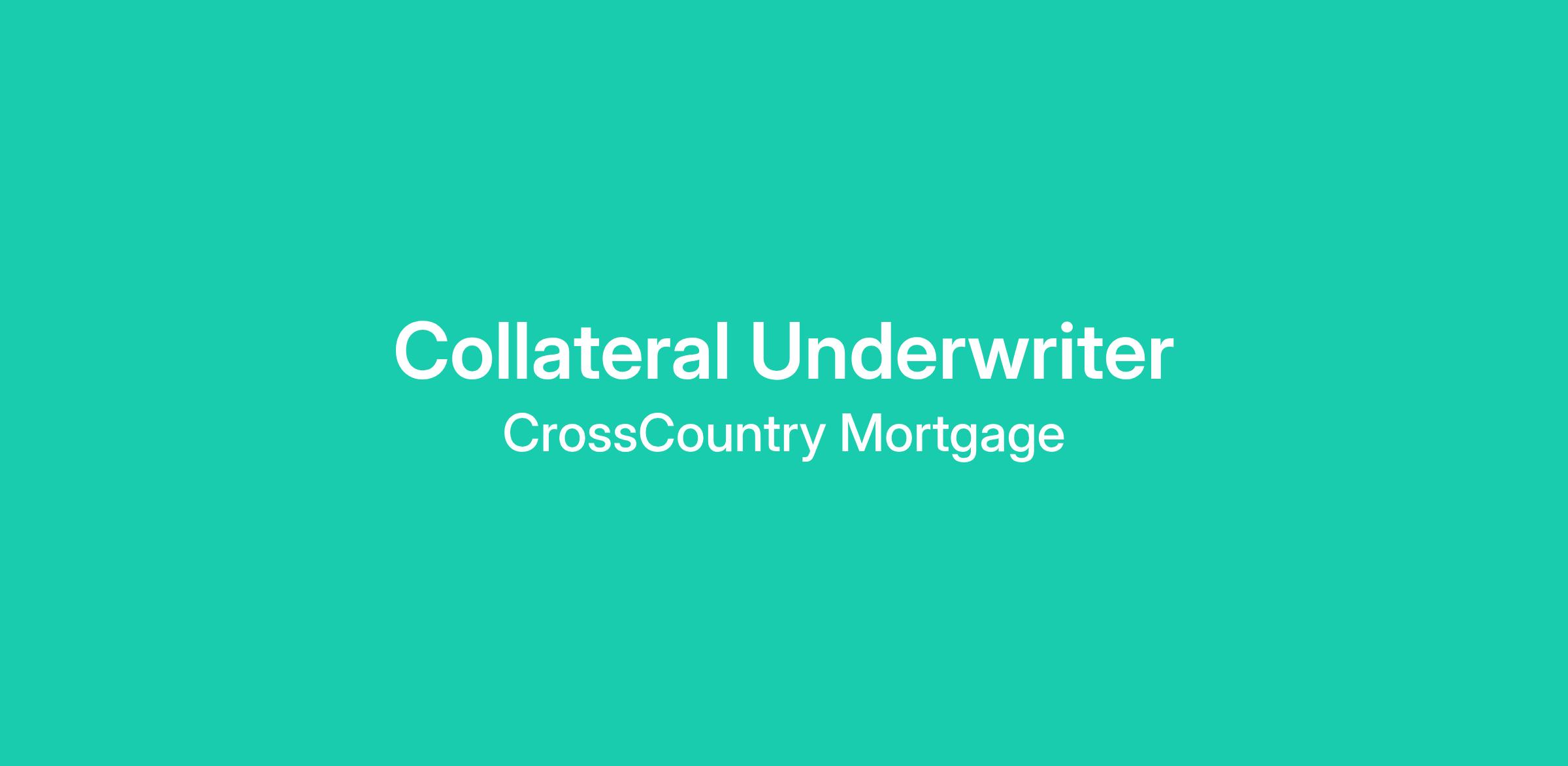 The Collateral Underwriter is responsible for the assessment of all subject collateral originated though the retail platform for conventional loans.