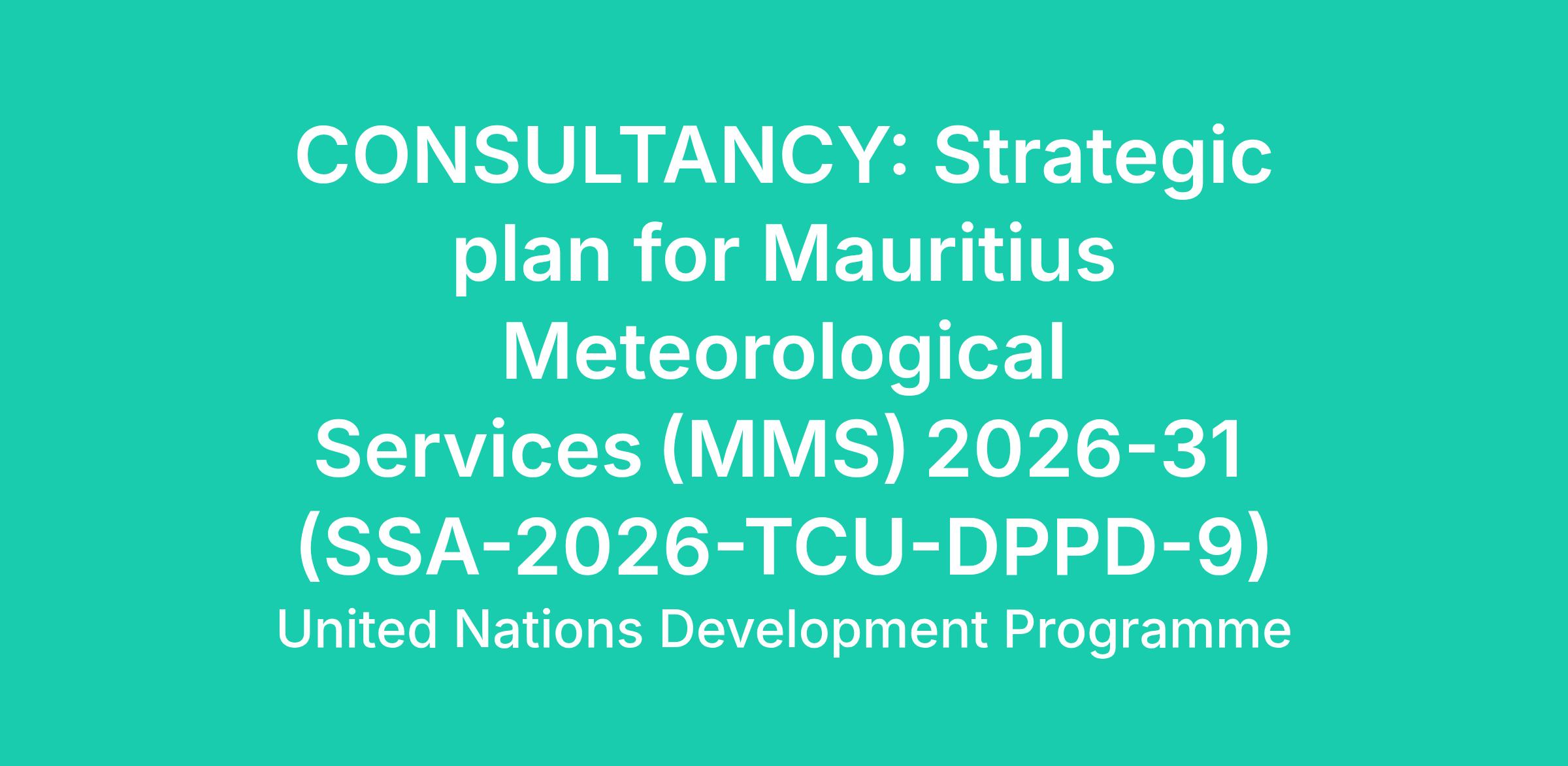The objective of the consultancy is to finalise the Strategic Plan (NSP) of the Mauritius Meteorological Services (MMS), in close coordination and under the supervision of WMO and MMS.