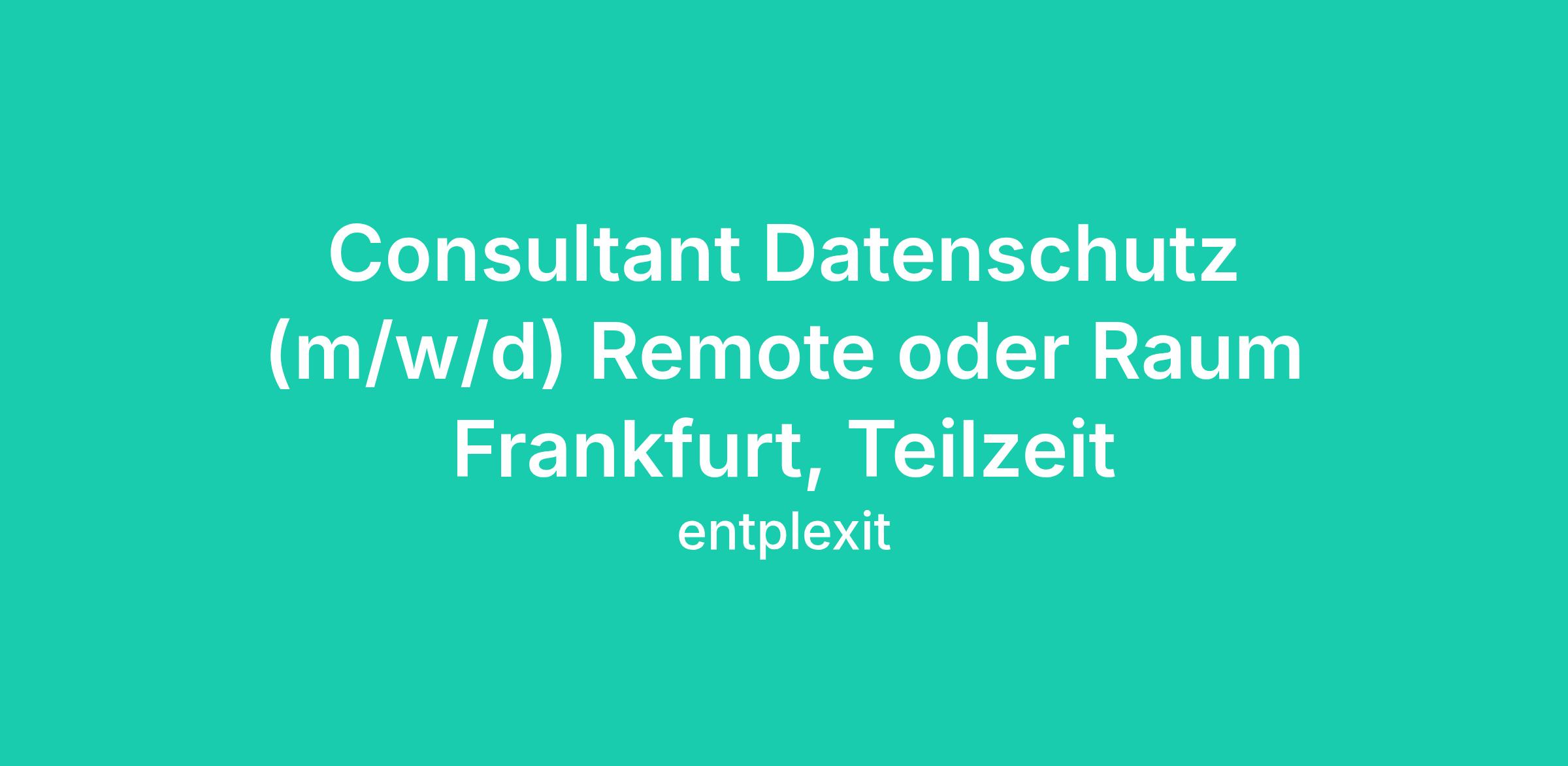 Consultant Datenschutz (m/w/d) Remote oder Raum Frankfurt, Teilzeit
