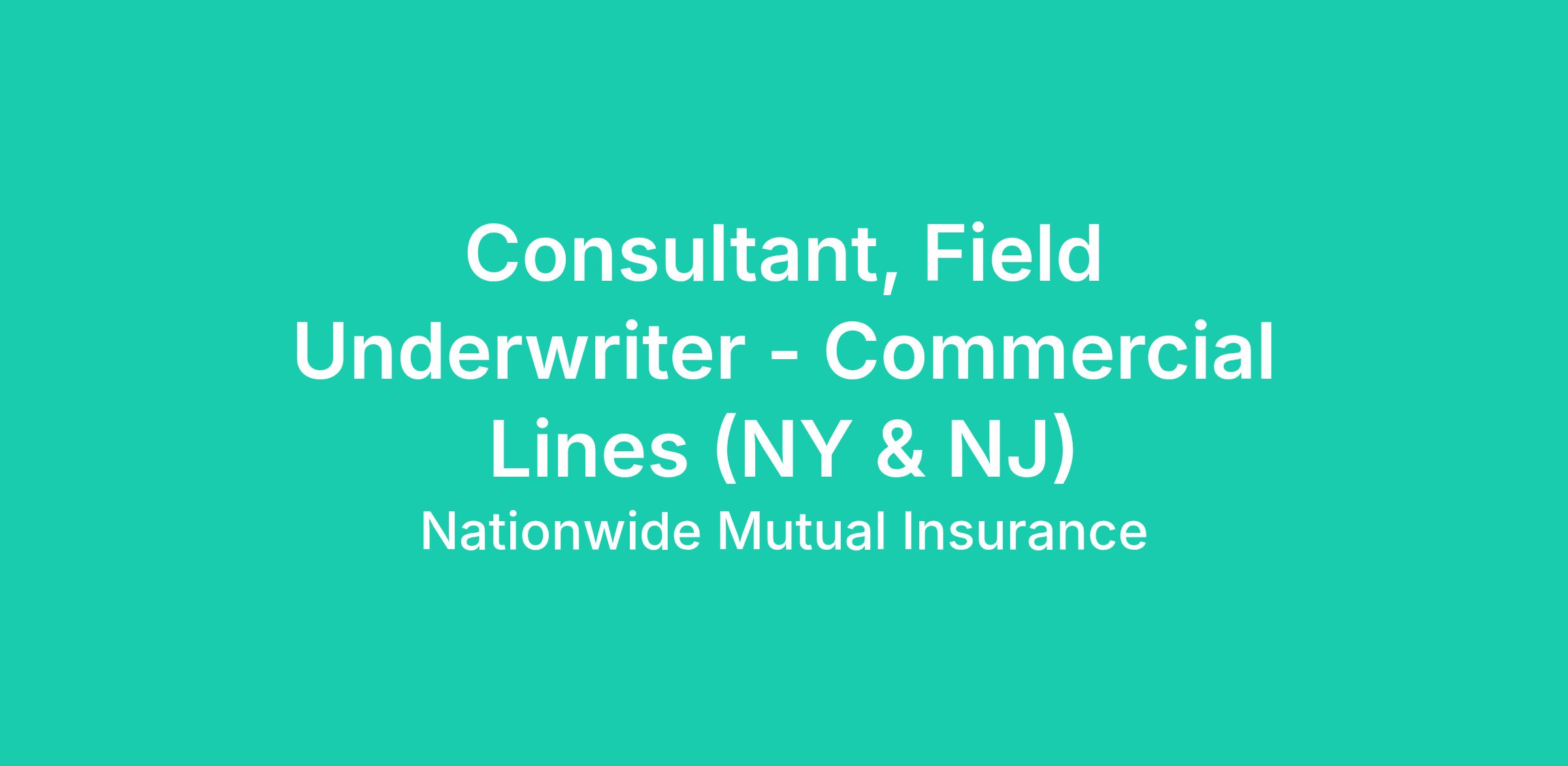 Nationwide pays on a geographic-specific salary structure and placement within the actual starting salary range for this position will be determined by a number of factors including the skills, education, training, credentials and experience of the candidate; the scope, complexity and location of the role as well as the cost of labor in the market; and other conditions of employment. If a Sales job, Sales Incentives, based on performance goals are possible in addition to this range. Note on Compensation for Part-Time Roles: Please be aware that the salary ranges listed below reflect full-time compensation. Actual compensation may be prorated based on the number of hours worked relative to a full-time schedule.The national salary range for Consultant, Field Underwriter - Commercial Lines : $104,000.00-$194,000.00The expected starting salary range for Consultant, Field Underwriter - Commercial Lines : $104,000.00 - $156,000.00