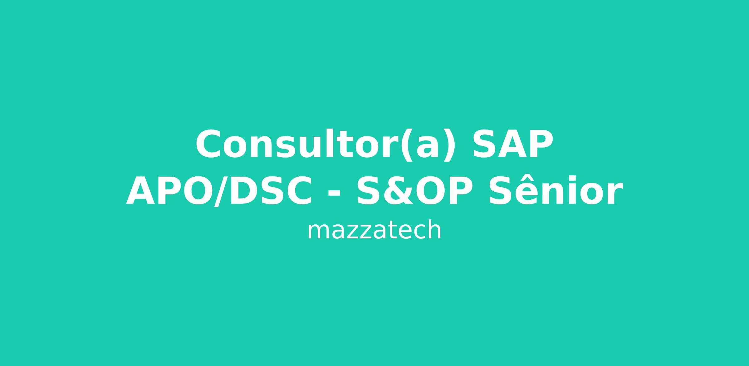 Atuar como Consultor(a) SAP Sênior com foco em planejamento da cadeia de suprimentos (S&OP), sendo responsável por implementar, sustentar e otimizar processos de planejamento utilizando SAP APO/DSC.