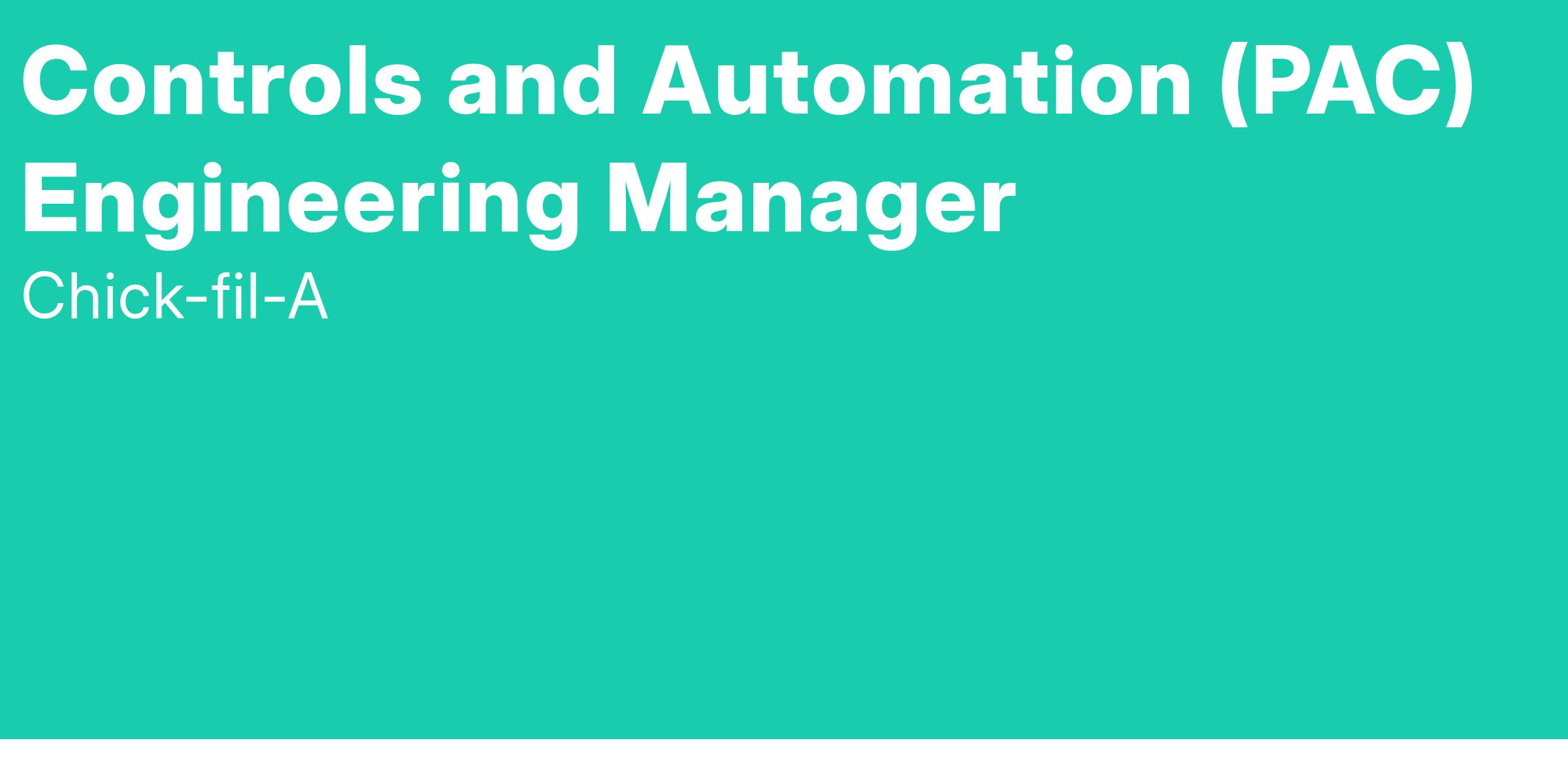 The Power Automation and Controls (PAC) Engineering Manager will be a Technical Subject Matter Expert (SME) responsible for uptime, continuous improvement, troubleshooting, leading and training operators on all automation equipment within the Chick-fil-A Supply Distribution Warehouse.