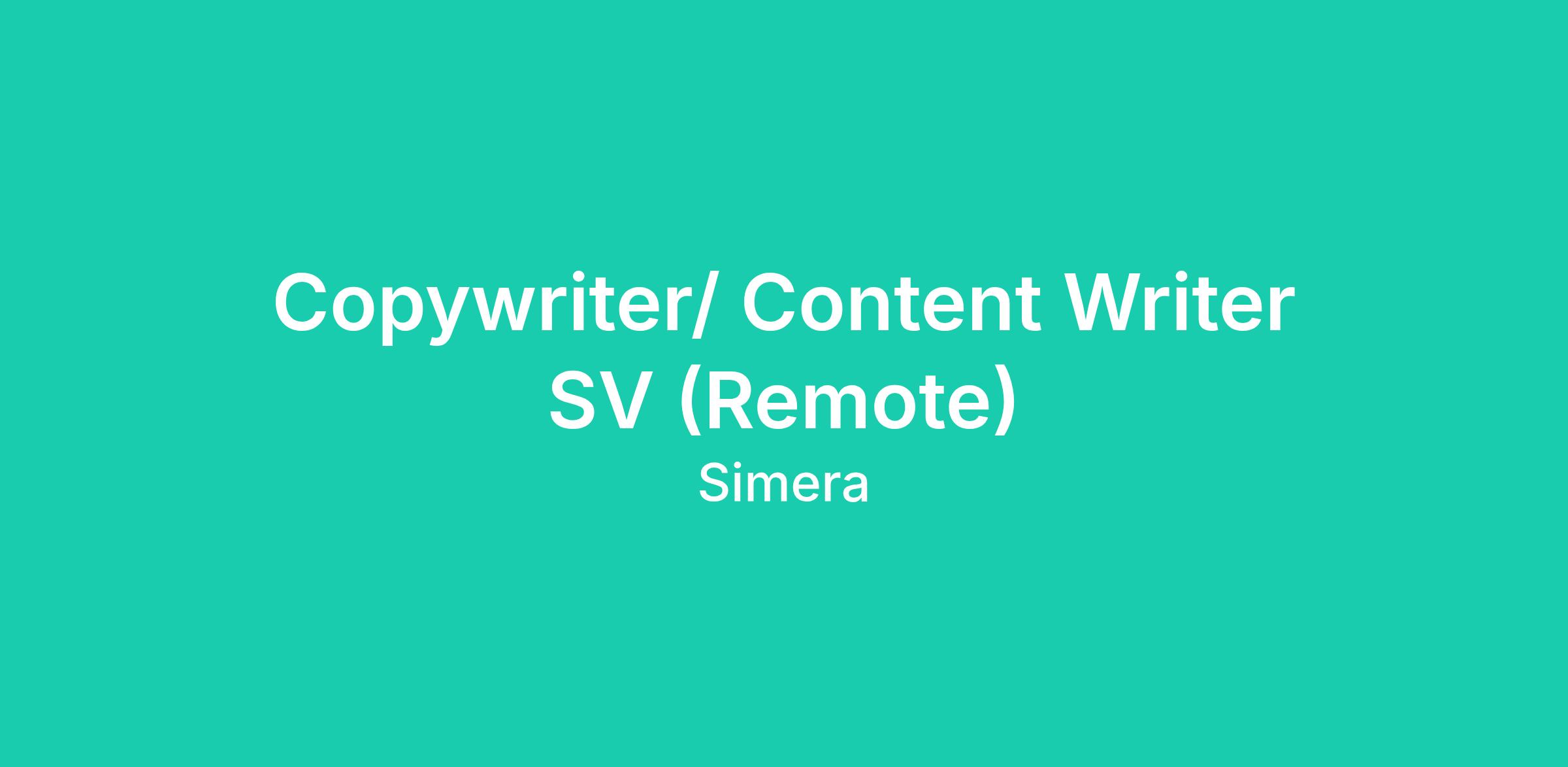 Copywriter/ Content Writer SV (Remote)
